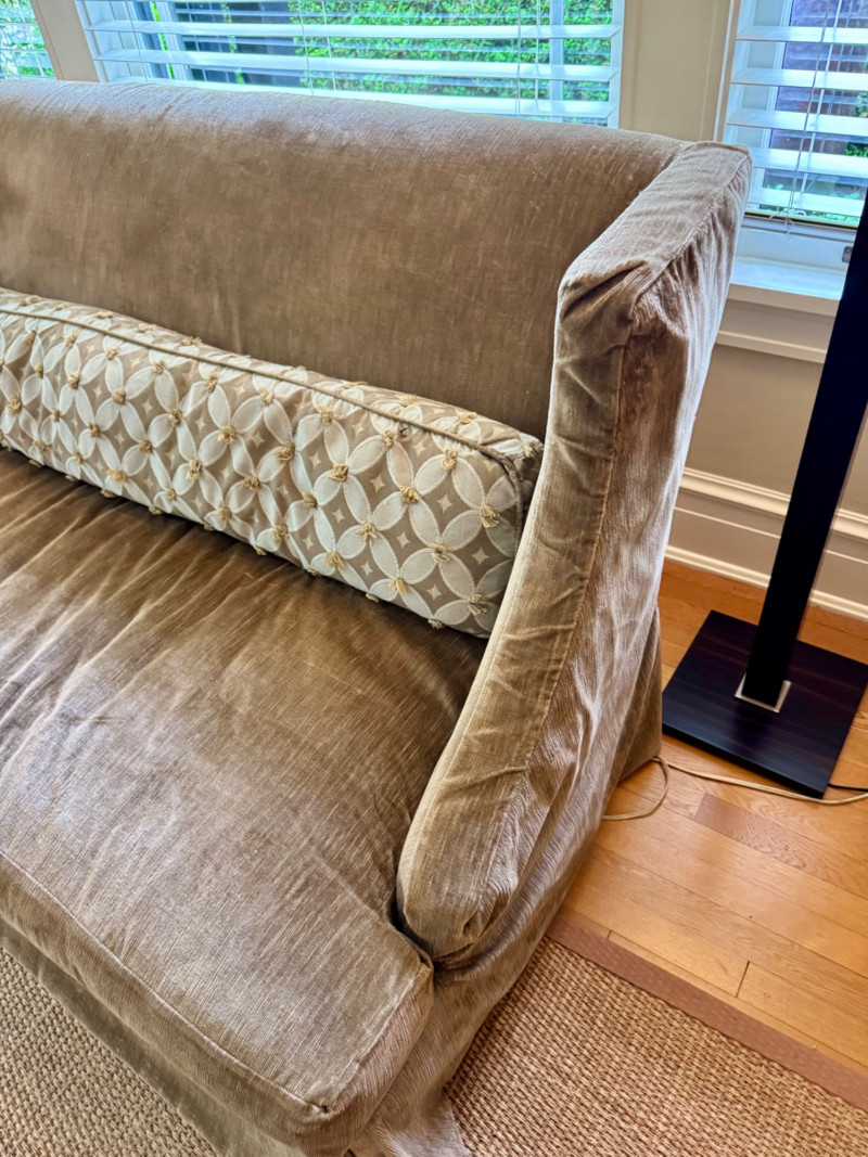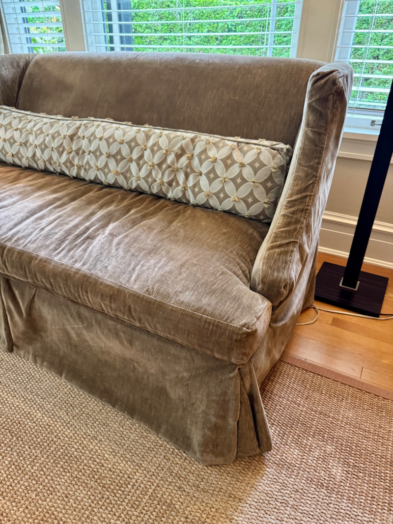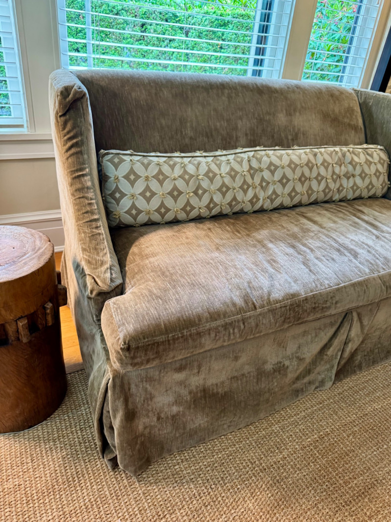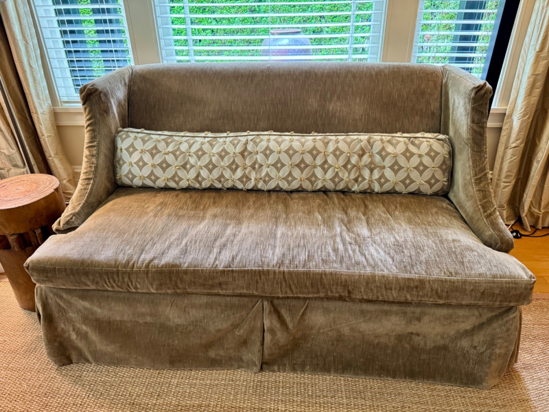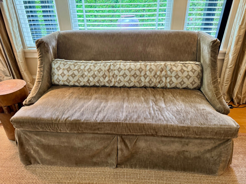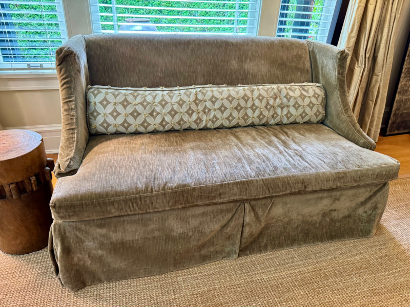 Romantic Green Velvet Settee w/ Down-Filled Lumbar Pillow – 67″ W. Dimensions: