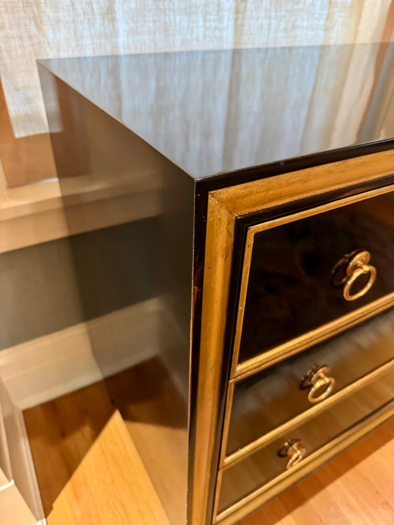 Lot # 32 - Black Lacquer Three-Drawer Chest w/ Gold Leaf Trim