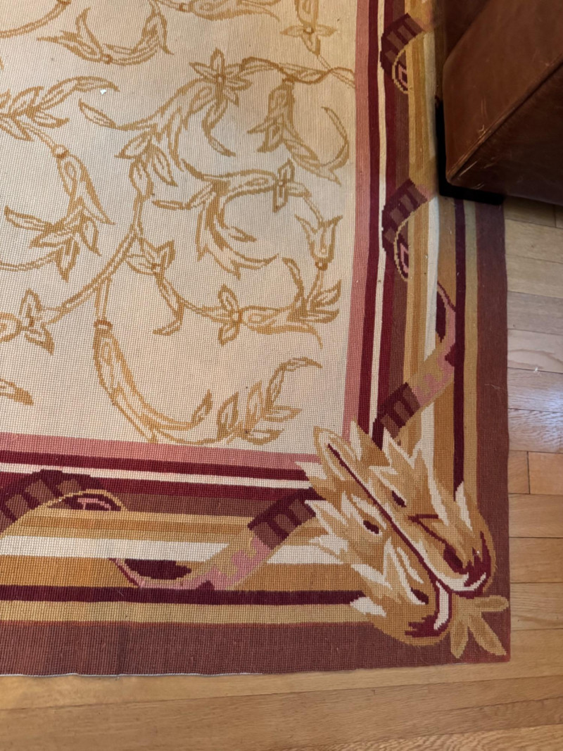 Vintage Needlepoint Area Rug - Aubusson Style - 102" x 66". Condition Note: