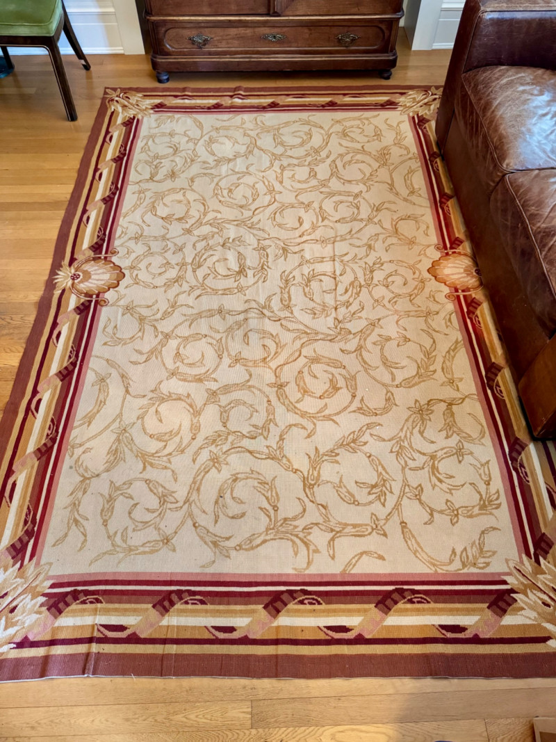 Please note that there are a few areas of wear and small stains on the rug, consistent with its vintage nature. PICK UP DETAILS