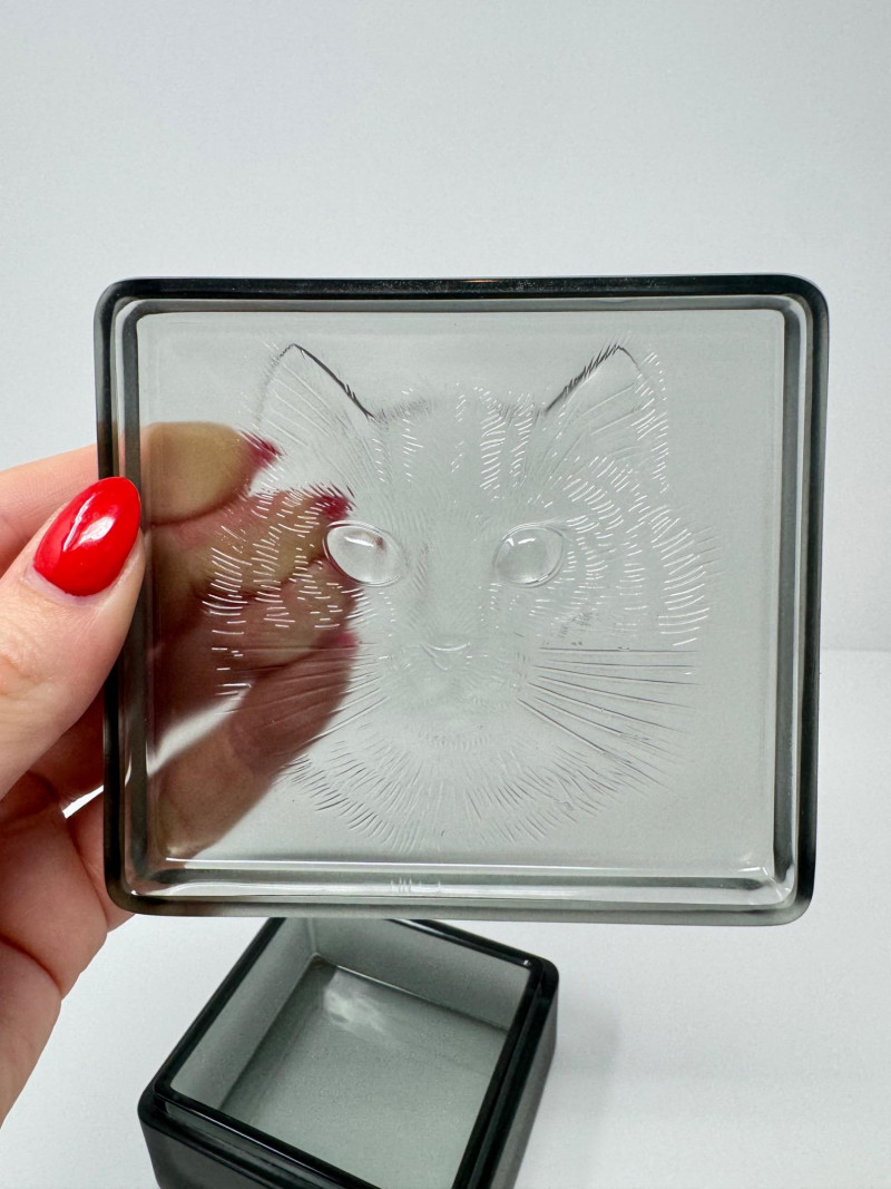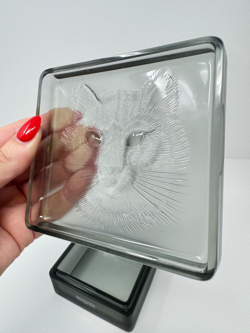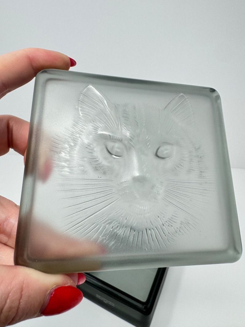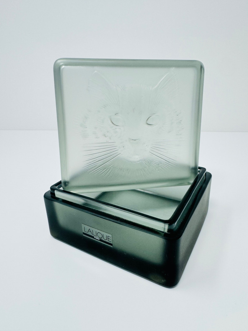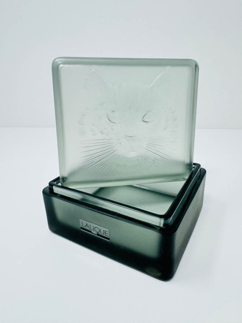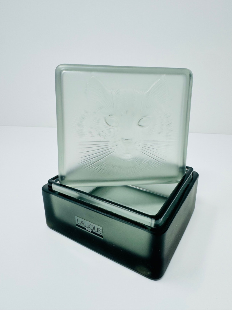Lalique France Frosted Grey Lidded Crystal Box – Est. Value $500. 3.5” x 4.5” Lid PICK UP DETAILS