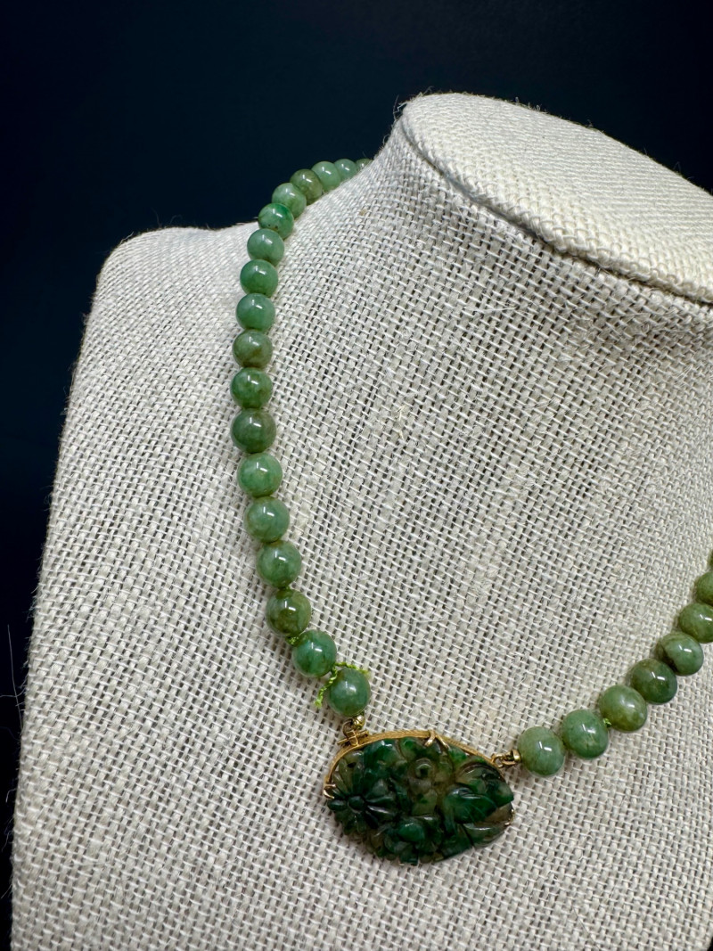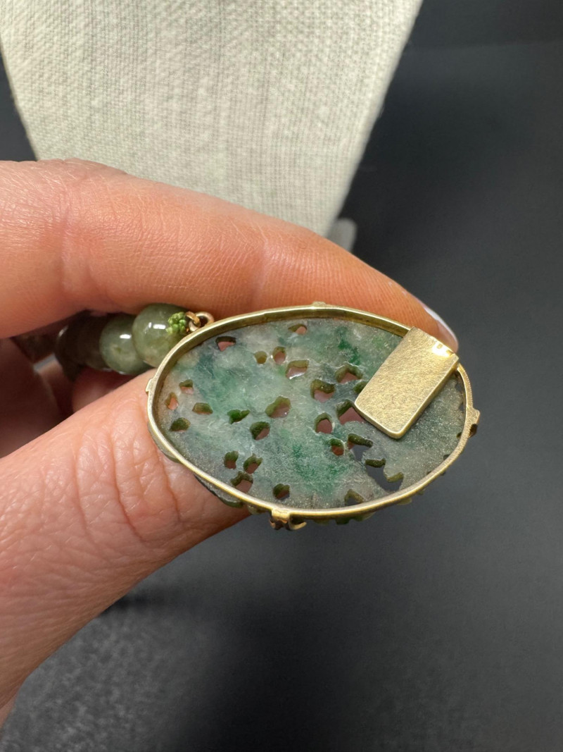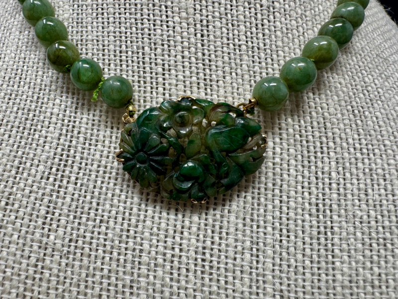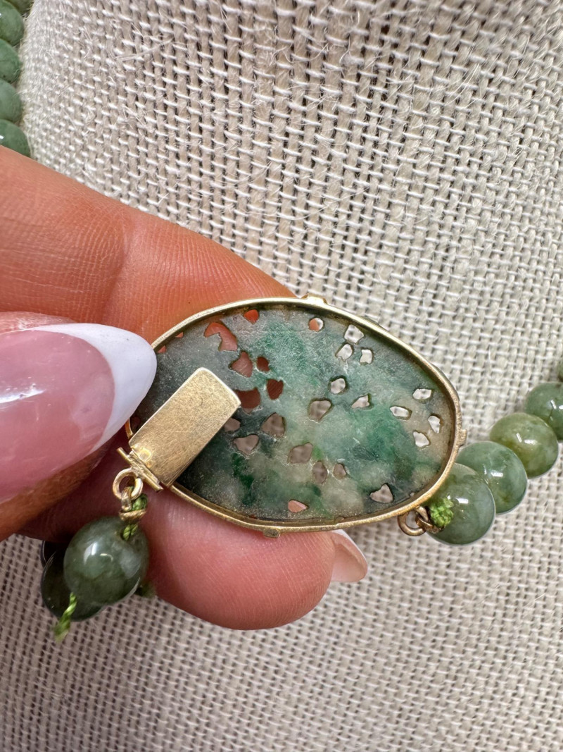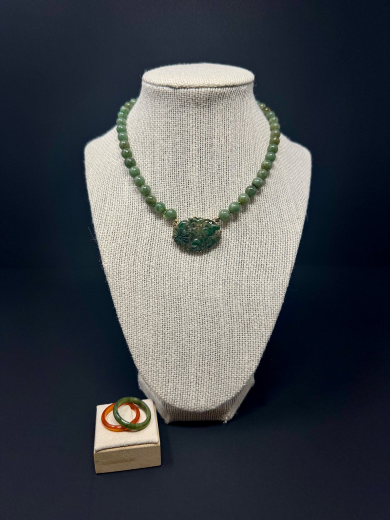 14K Gold & Carved Jade Choker Necklace + Matching Stone Rings. Rings Size 8.5 PICK UP DETAILS