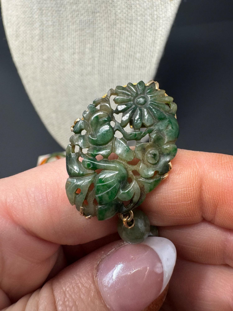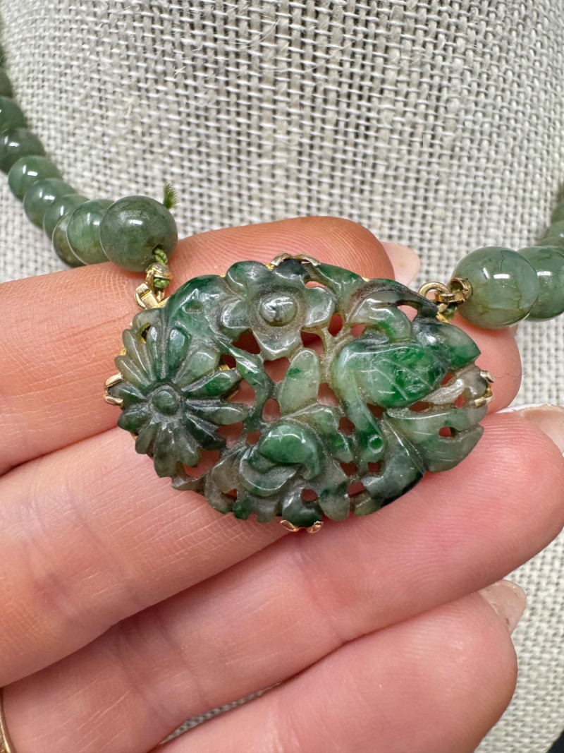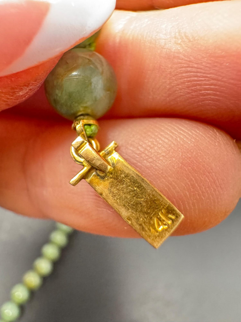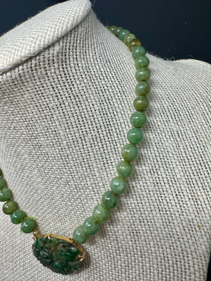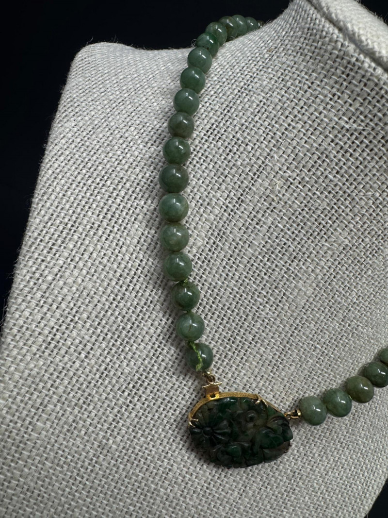 14K Gold & Carved Jade Choker Necklace + Matching Stone Rings. Rings Size 8.5 PICK UP DETAILS