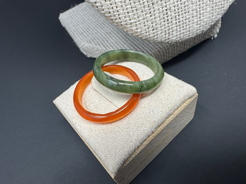 Lot # 44 - 14K Gold & Carved Jade Choker Necklace + Matching Stone Rings