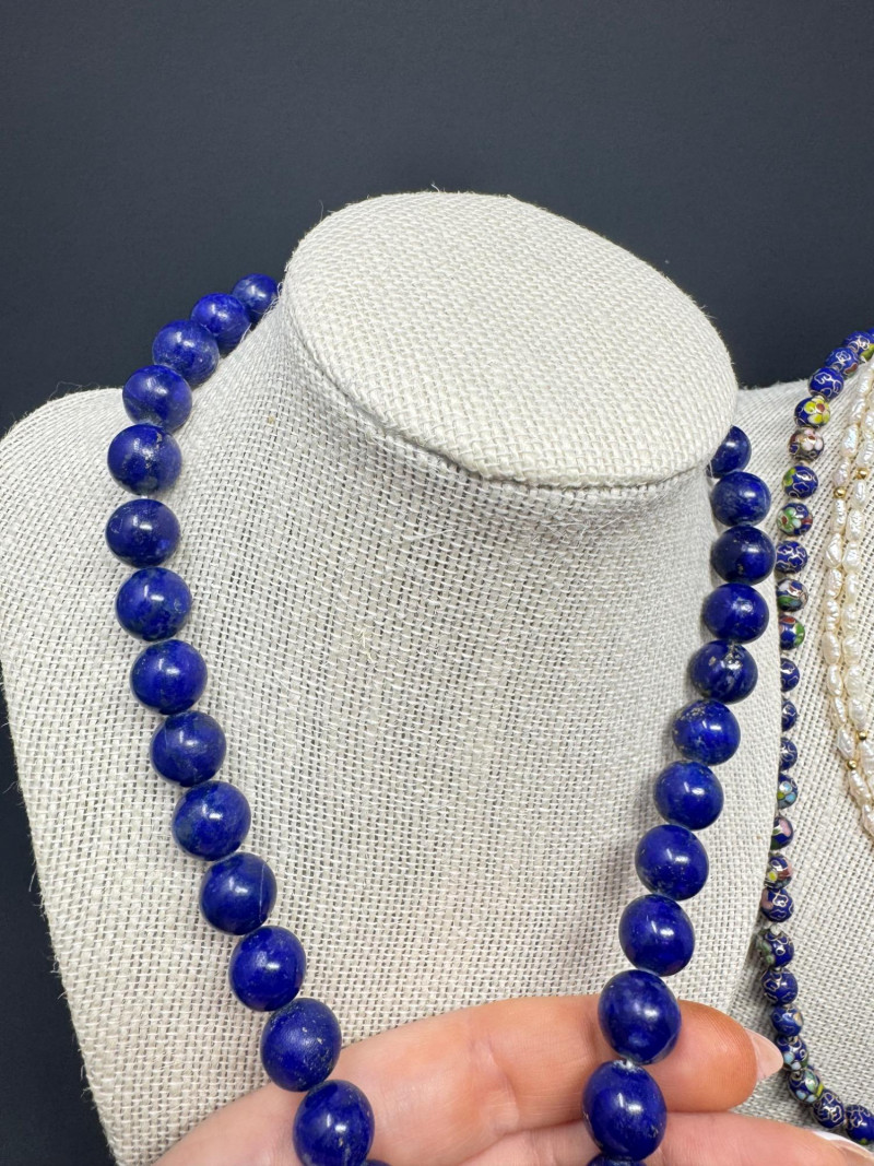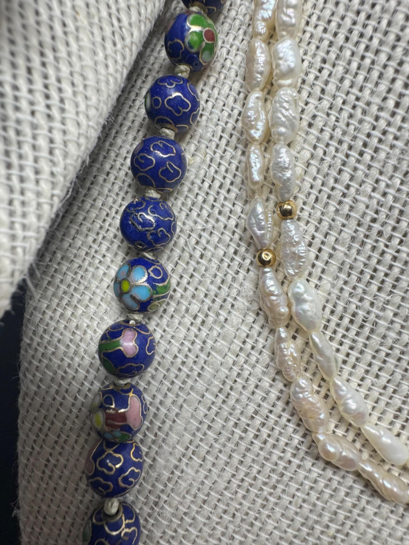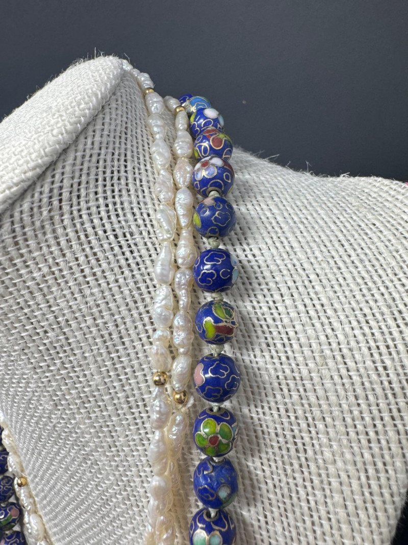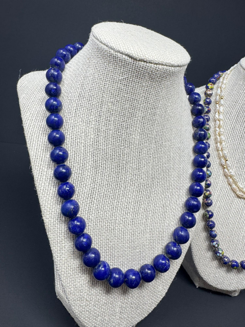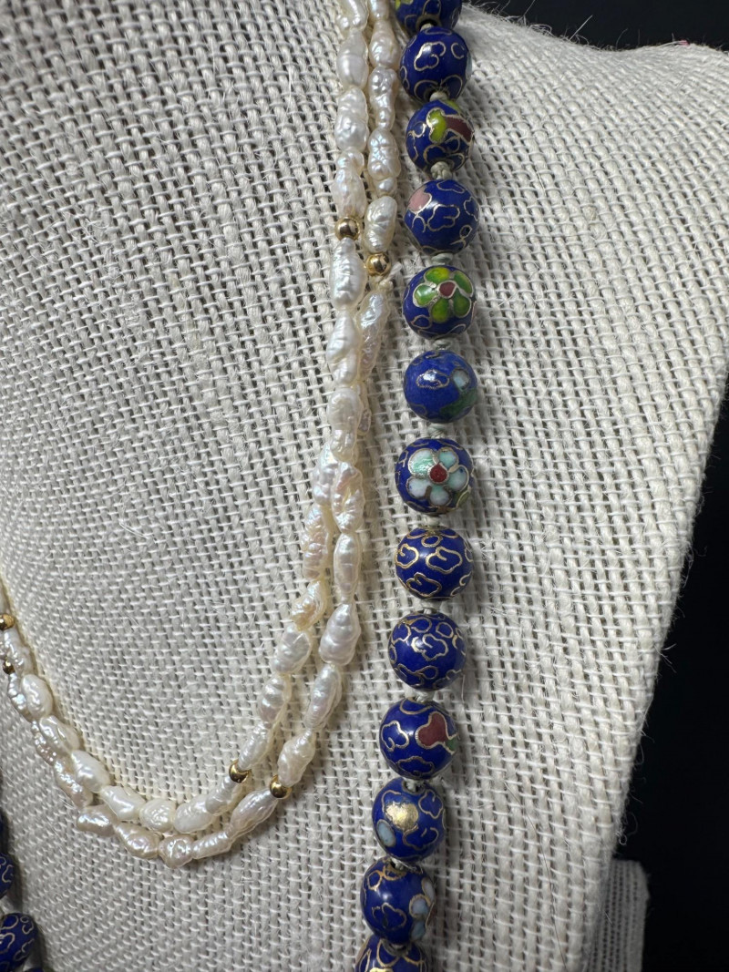 Lot # 47 - Lapis, Cloisonné, Pearl Necklace Trio - Statement & Classic Styles!