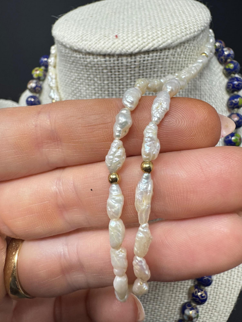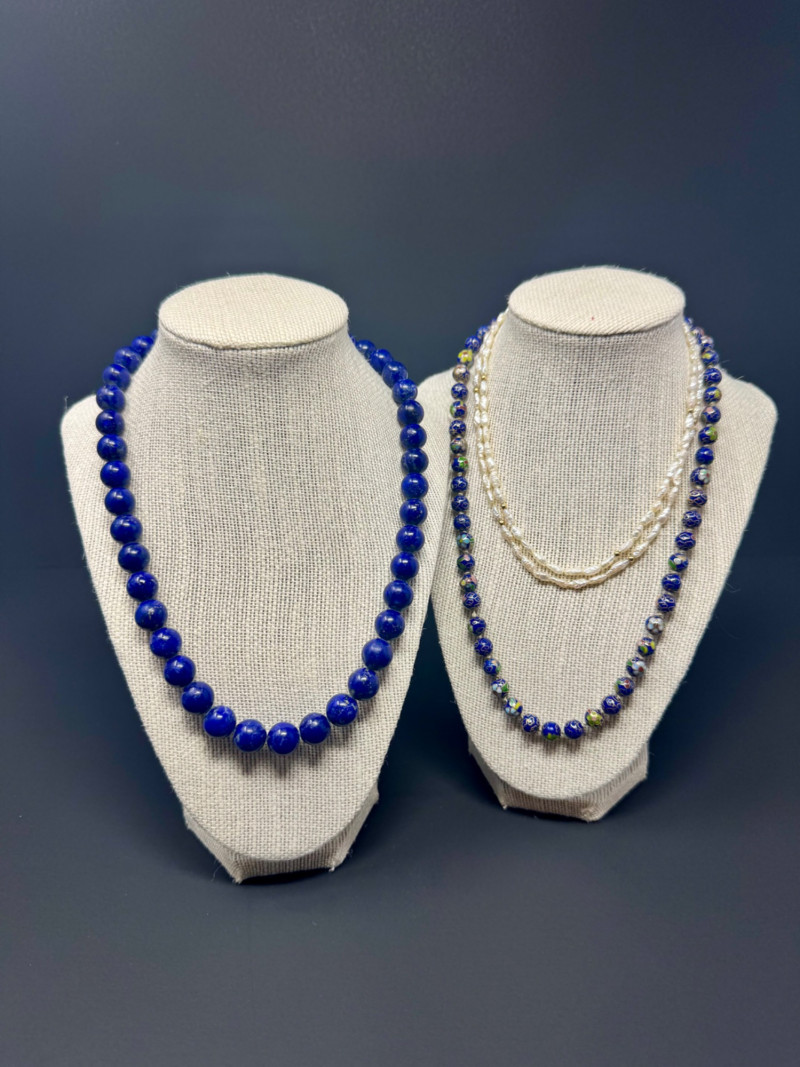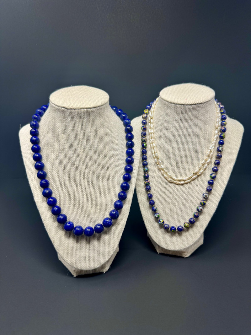 Lapis, Cloisonné, Pearl Necklace Trio - Statement & Classic Styles! 24" Chunky Blue Lapis 20" Cloisonné Necklace 30" Rice Pearl Necklace PICK UP DETAILS