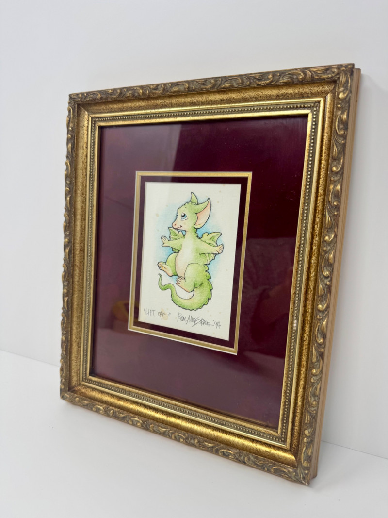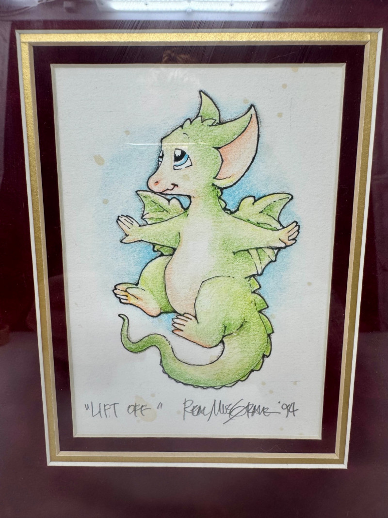 Real & Muff Musgrave Original 'Lift Off' Dragon Art - Signed 1994. Appears to be an original. 9.5 x 11.5” PICK UP DETAILS Please plan accordingly—pickup times and locations are strictly by lot number, with no exceptions.