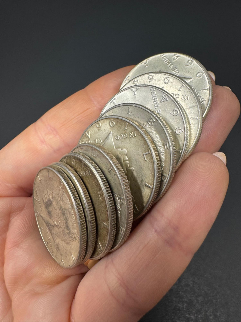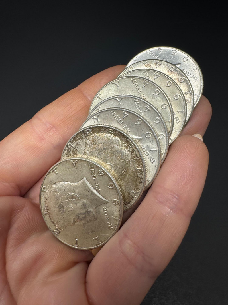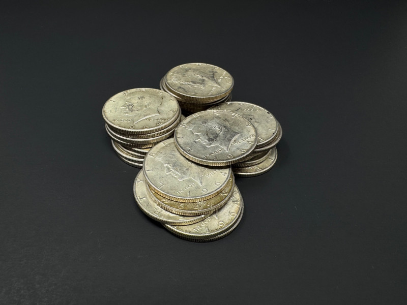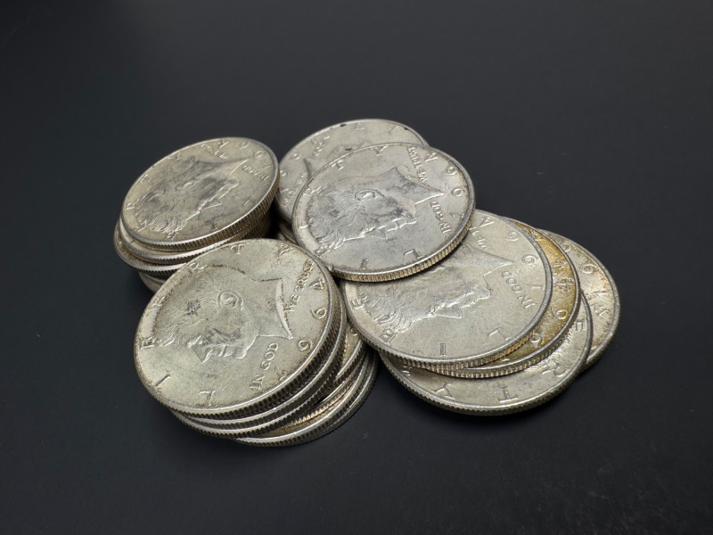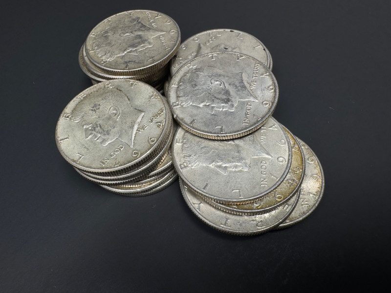 31 Pcs Kennedy Half Dollars 29 x 90% Silver (1964) + 2 Regular Coins. Composition: 90% Silver Fineness: 0.9 Weight: 12.5g ASW: 0.3617oz Melt Value: $12.02 (as of 5/30/2025) Diameter: 30.6mm PICK UP DETAILS Please plan accordingly—pickup times and locations are strictly by lot number, with no exceptions.