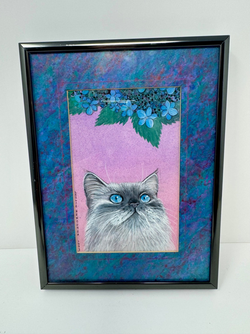 Lot # 60 - Leslie Newcomer ‘Imp’ Original 6×8 Cat Portrait w/ Vivid Blue Eyes