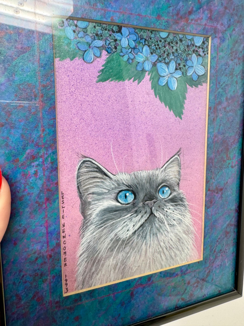 Leslie Newcomer ‘Imp’ Original 6×8 Cat Portrait w/ Vivid Blue Eyes. PICK UP DETAILS Please plan accordingly—pickup times and locations are strictly by lot number, with no exceptions.