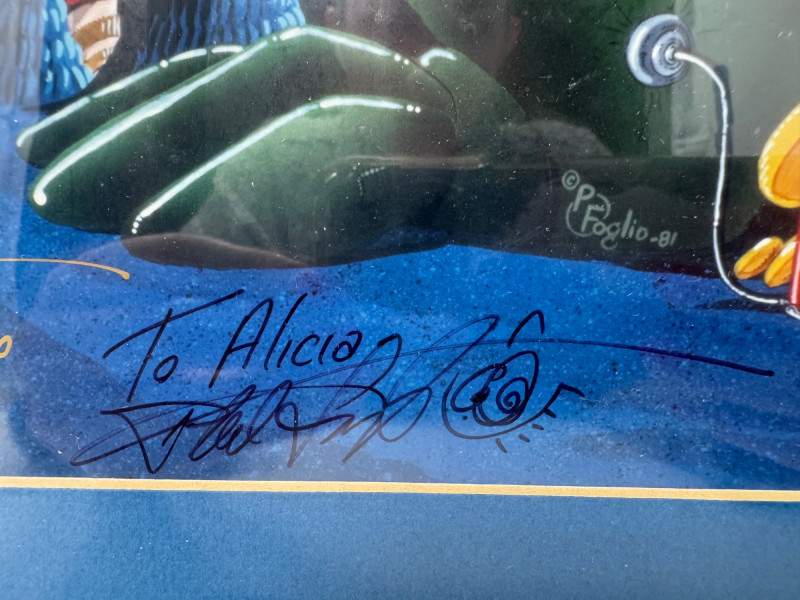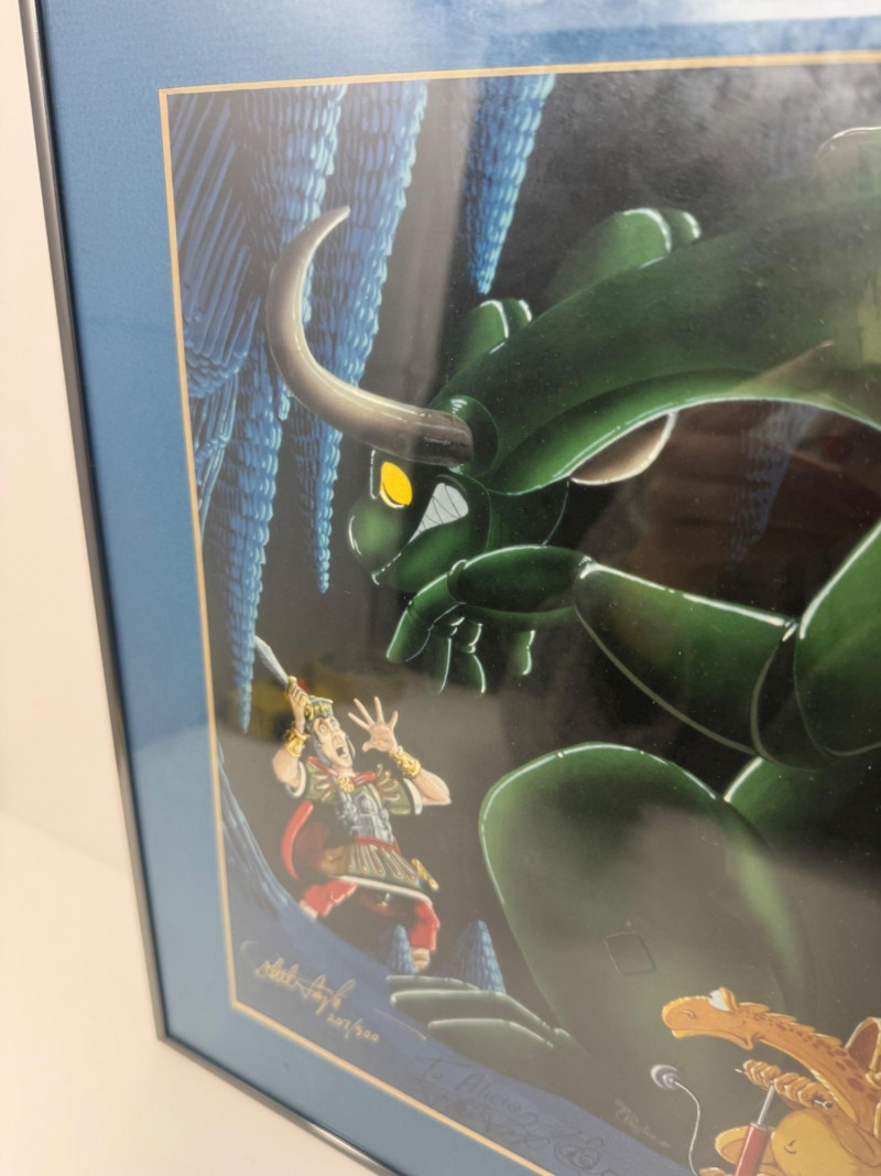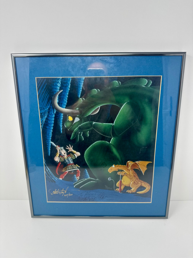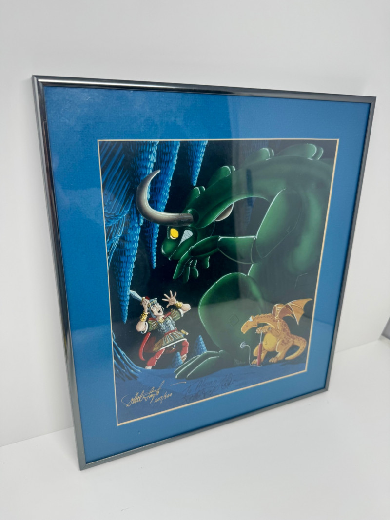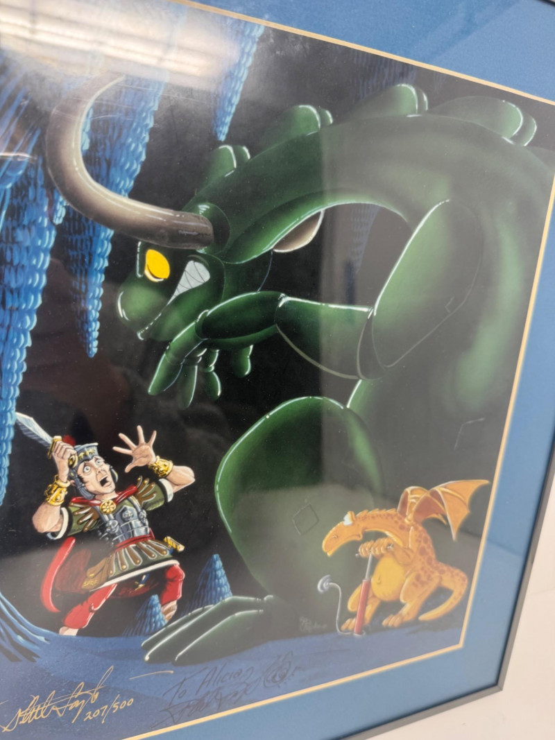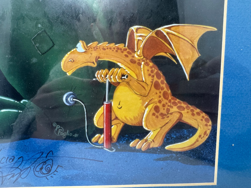 Phil Foglio Signed "Inflato the Magnificent" Fantasy Art Print. Signed in gold by artist; inscribed “To Alicia”. 14″ W × 15.5″ H PICK UP DETAILS Please plan accordingly—pickup times and locations are strictly by lot number, with no exceptions.