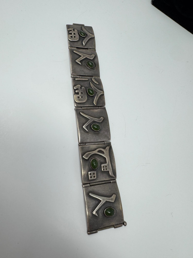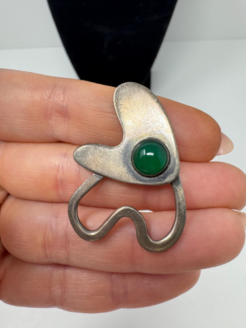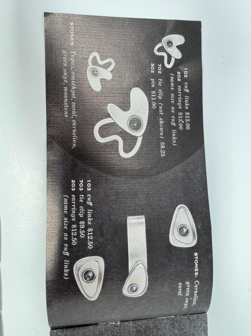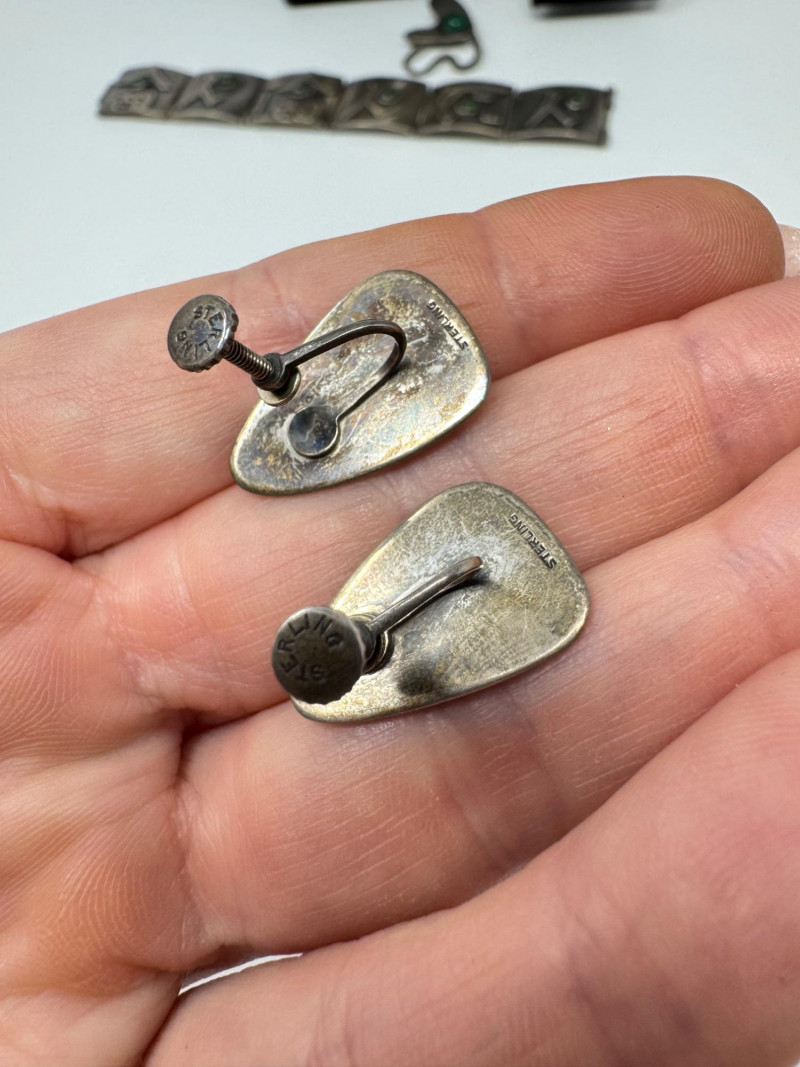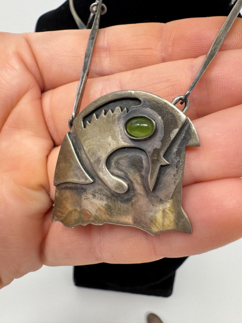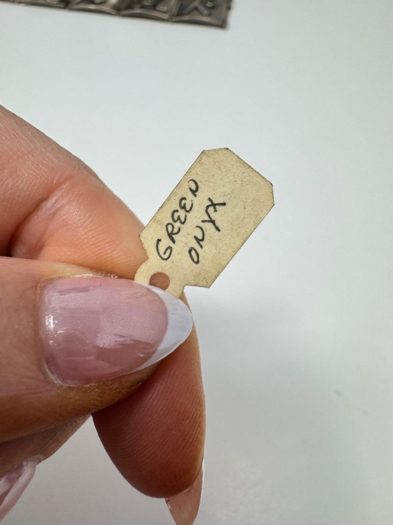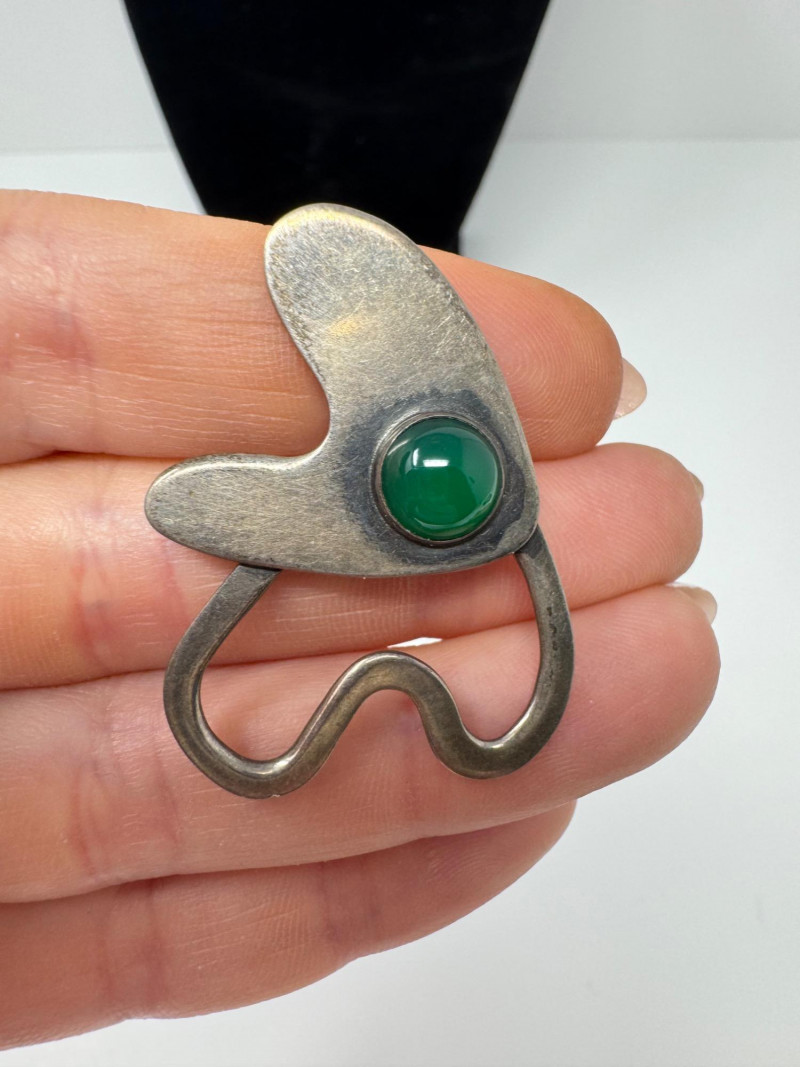 Signed Mary Zuckerbrod Mid-Century Sterling & Green Onyx Jewelry Set. Original informational pamphlet is not included. PICK UP DETAILS Please plan accordingly—pickup times and locations are strictly by lot number, with no exceptions. Disclaimer: All jewelry has been inspected and tested by a jeweler. However, items are sold "as is" with no guarantees regarding metal quality, content, or purity. By placing a bid, you acknowledge and agree to these terms. Refunds will not be issued based on these factors.