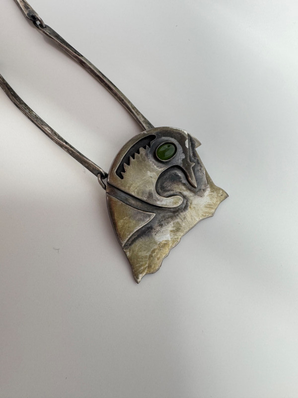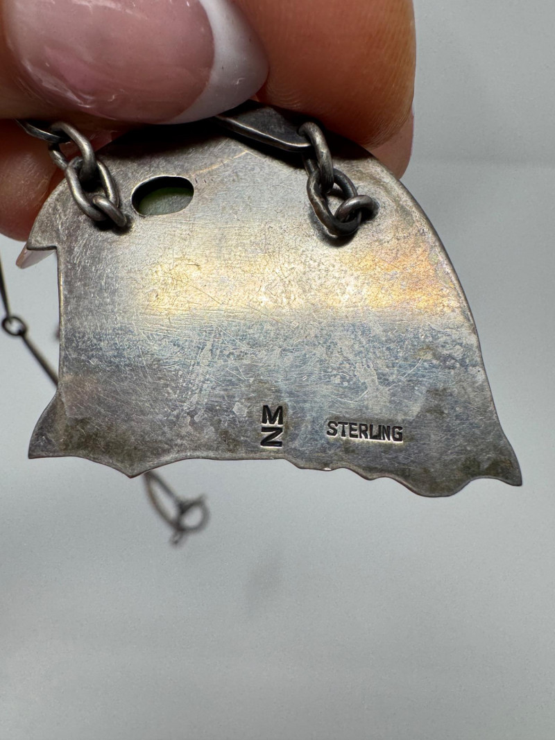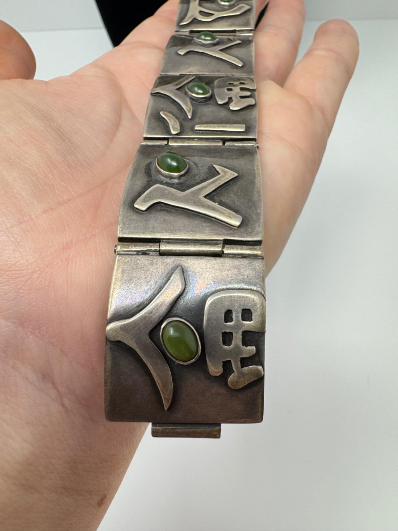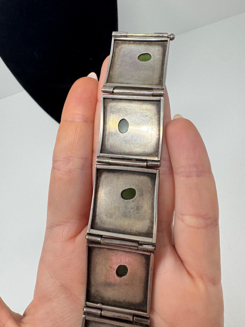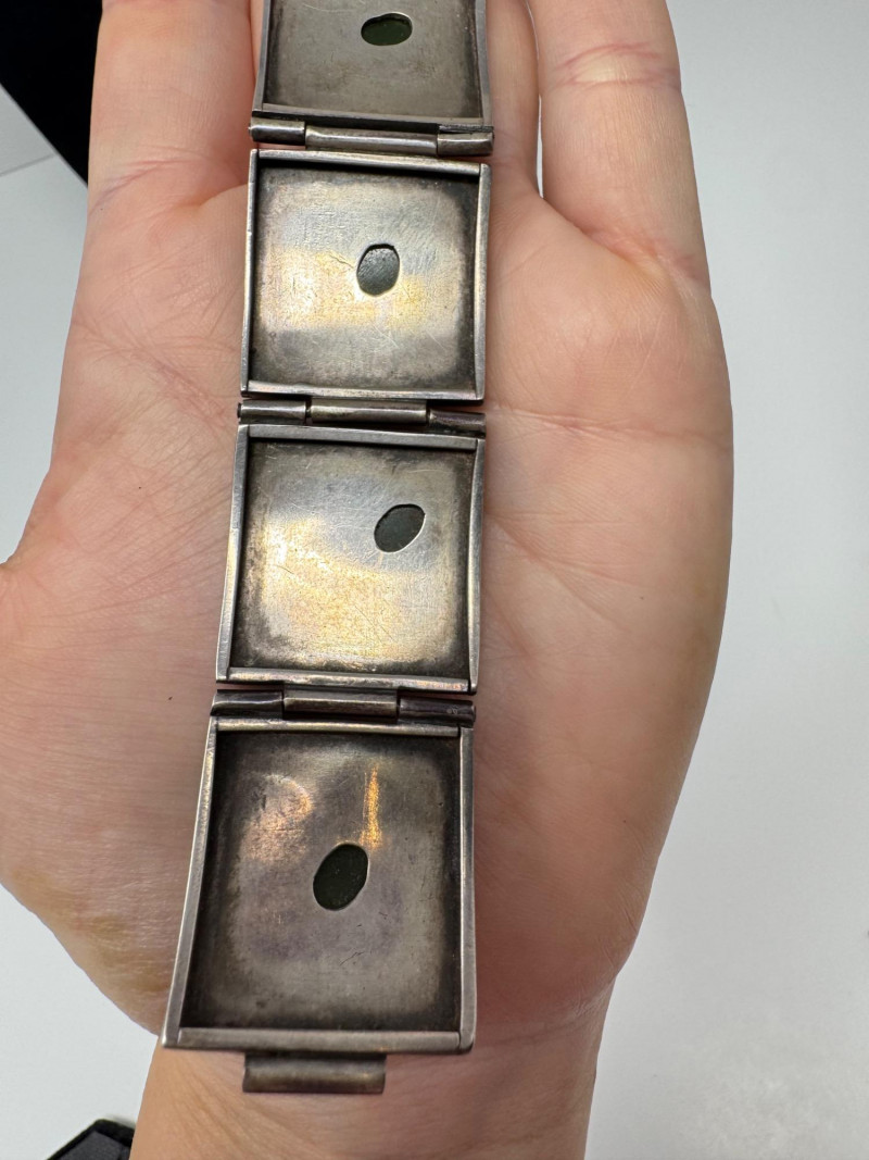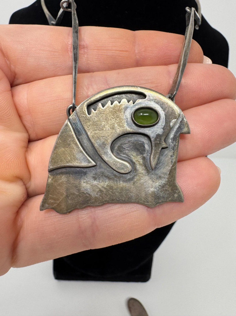 Signed Mary Zuckerbrod Mid-Century Sterling & Green Onyx Jewelry Set. Original informational pamphlet is not included. PICK UP DETAILS Please plan accordingly—pickup times and locations are strictly by lot number, with no exceptions. Disclaimer: All jewelry has been inspected and tested by a jeweler. However, items are sold "as is" with no guarantees regarding metal quality, content, or purity. By placing a bid, you acknowledge and agree to these terms. Refunds will not be issued based on these factors.