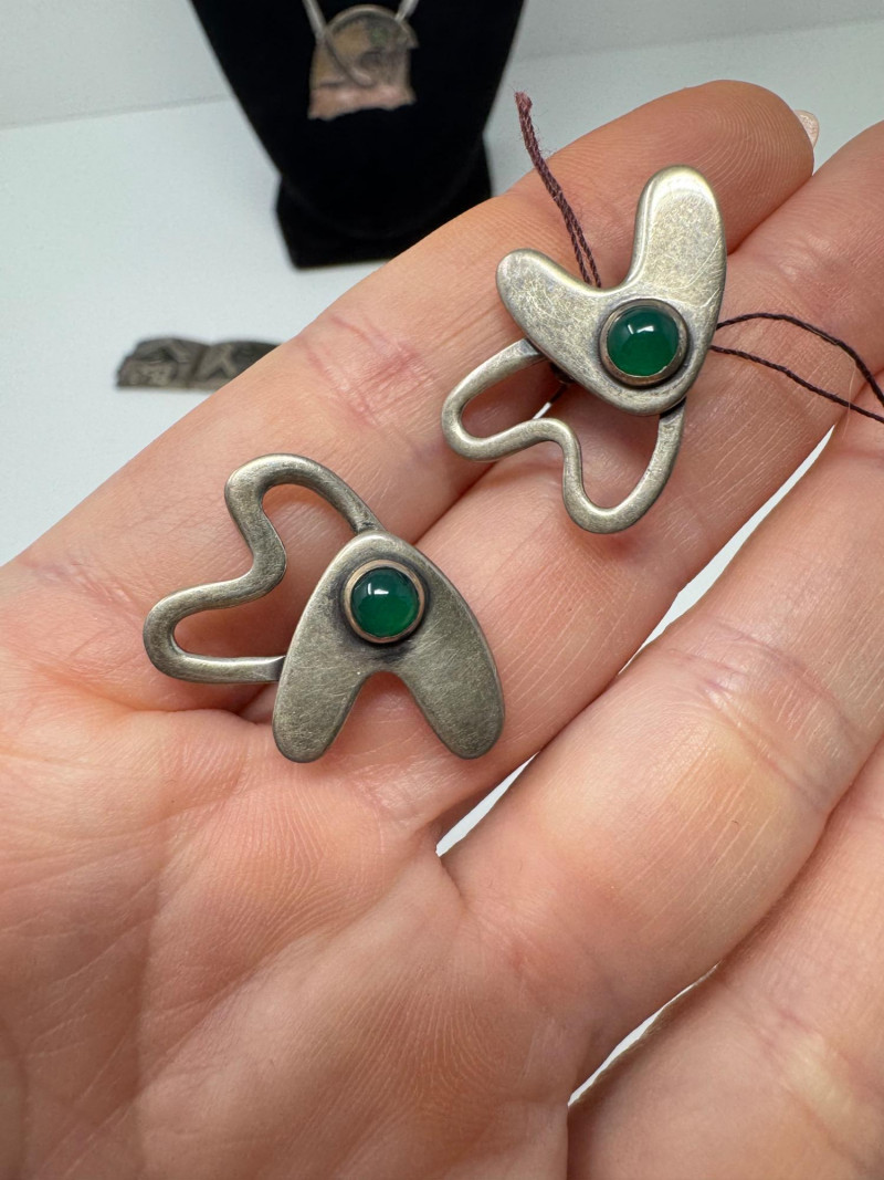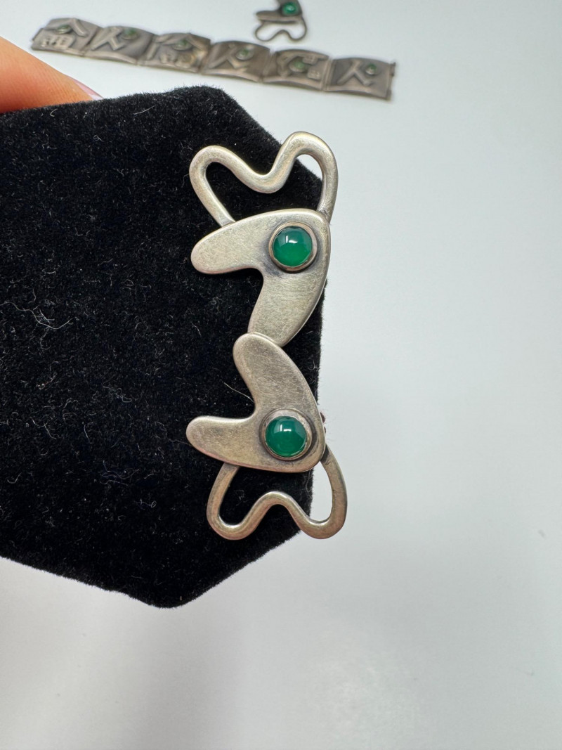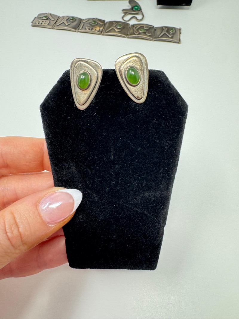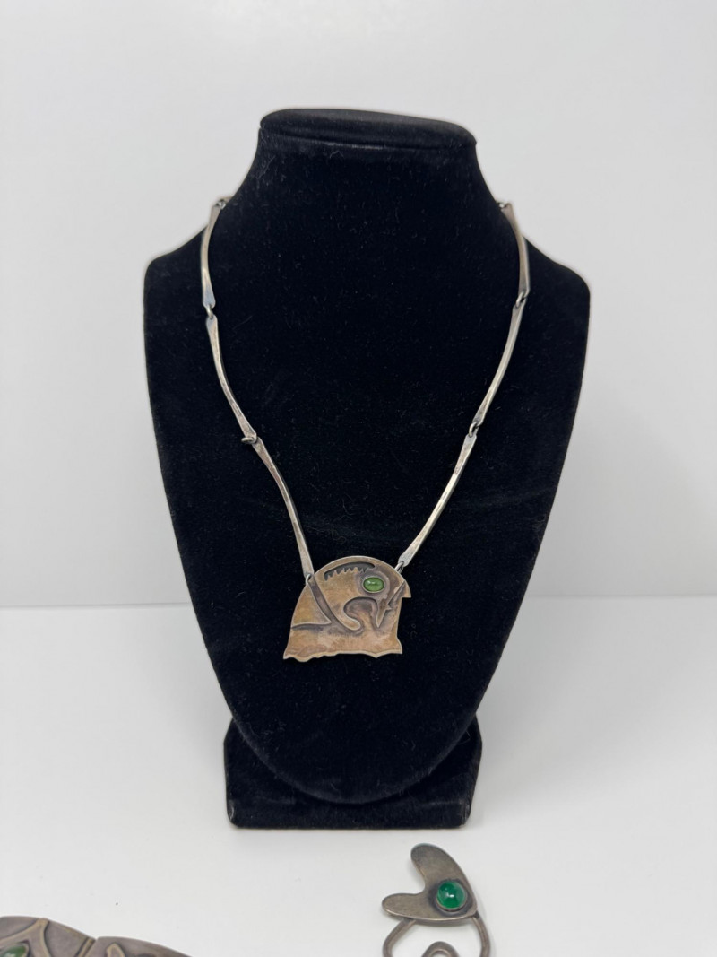 Lot # 67 - Signed Mary Zuckerbrod Mid-Century Sterling & Green Onyx Jewelry Set