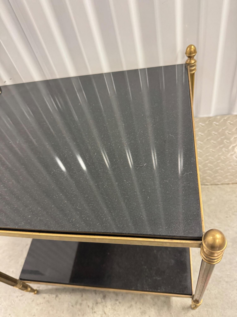 Lot # 97 - Two-Tier Side Table w/ Black Stone Tops & Gold-Tone Metal Frame