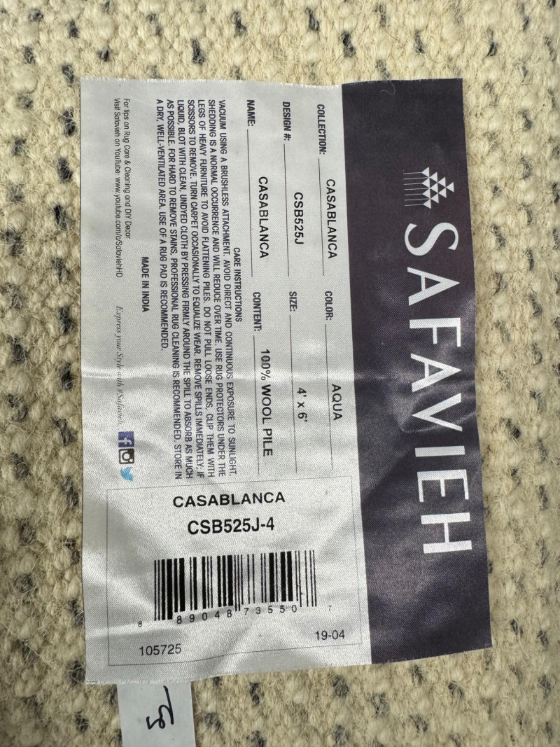 Safavieh Casablanca 4’×6’ Wool Area Rug – Aqua, Cream & Gray Hues #1. PICK UP DETAILS Please plan accordingly—pickup times and locations are strictly by lot number, with no exceptions.