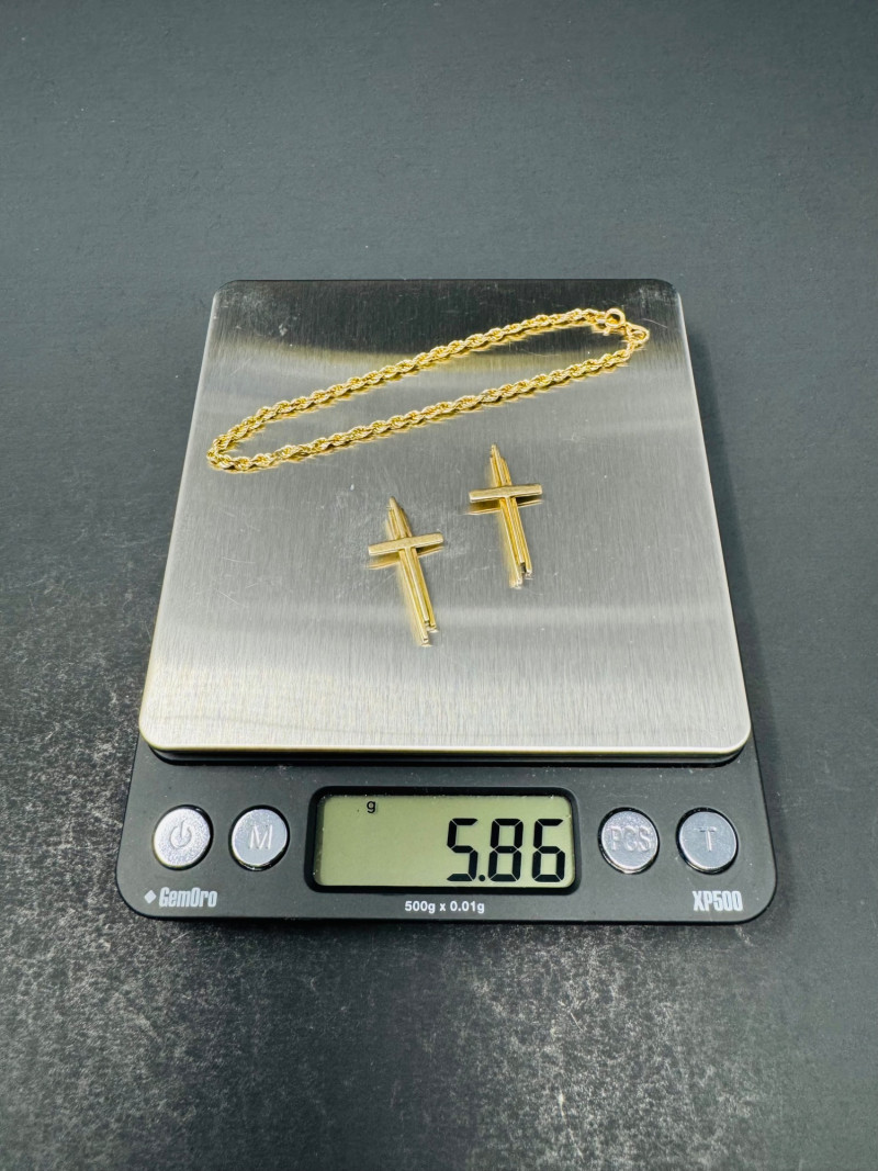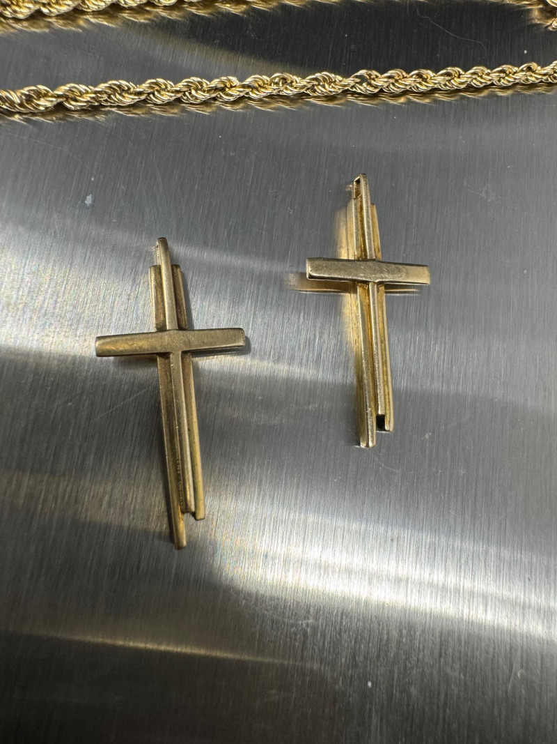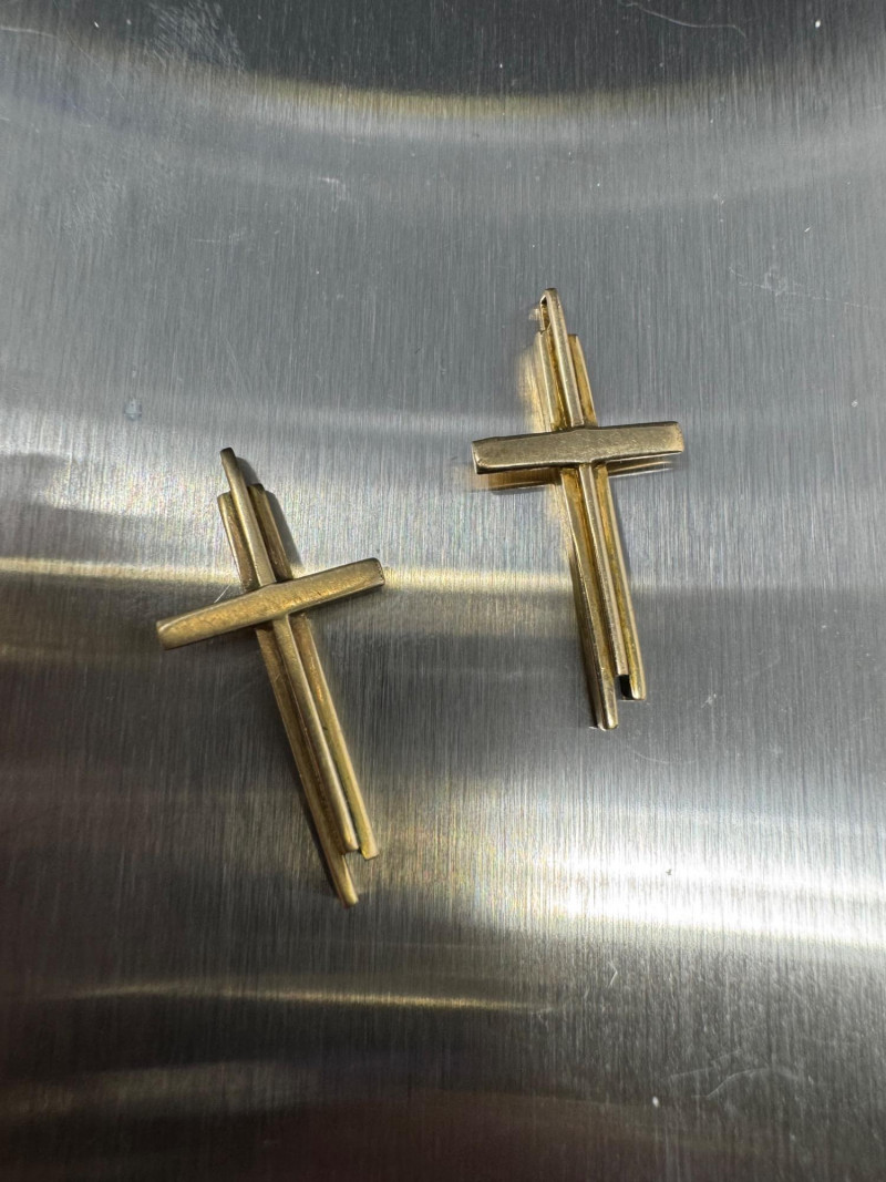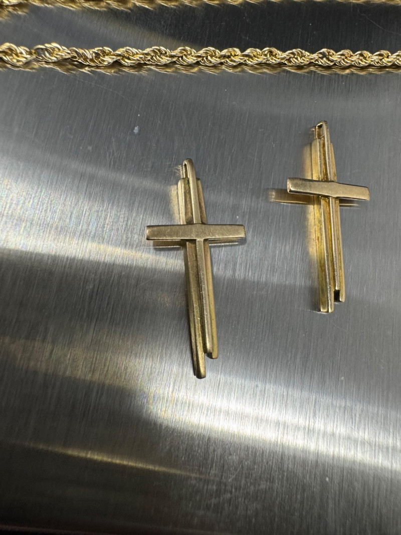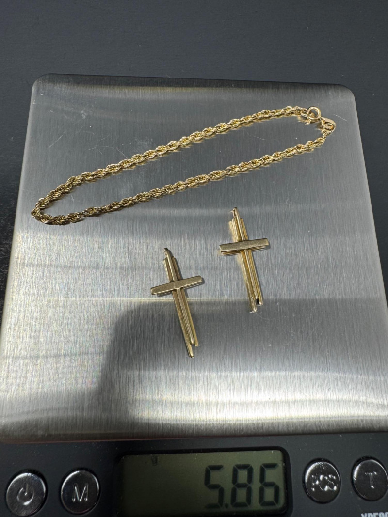 14K Gold Bracelet & 2 Mid-Century Cross Pendants - 5.86 Grams. PICK UP DETAILS Please plan accordingly—pickup times and locations are strictly by lot number, with no exceptions.
