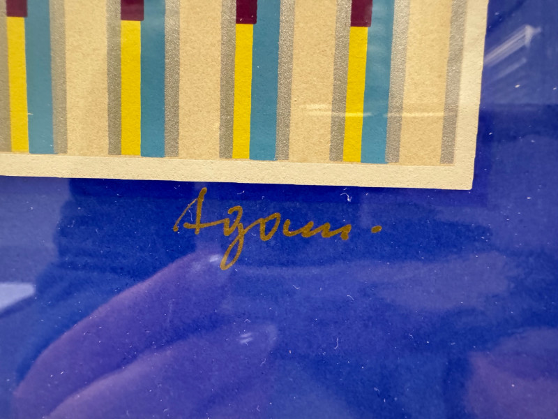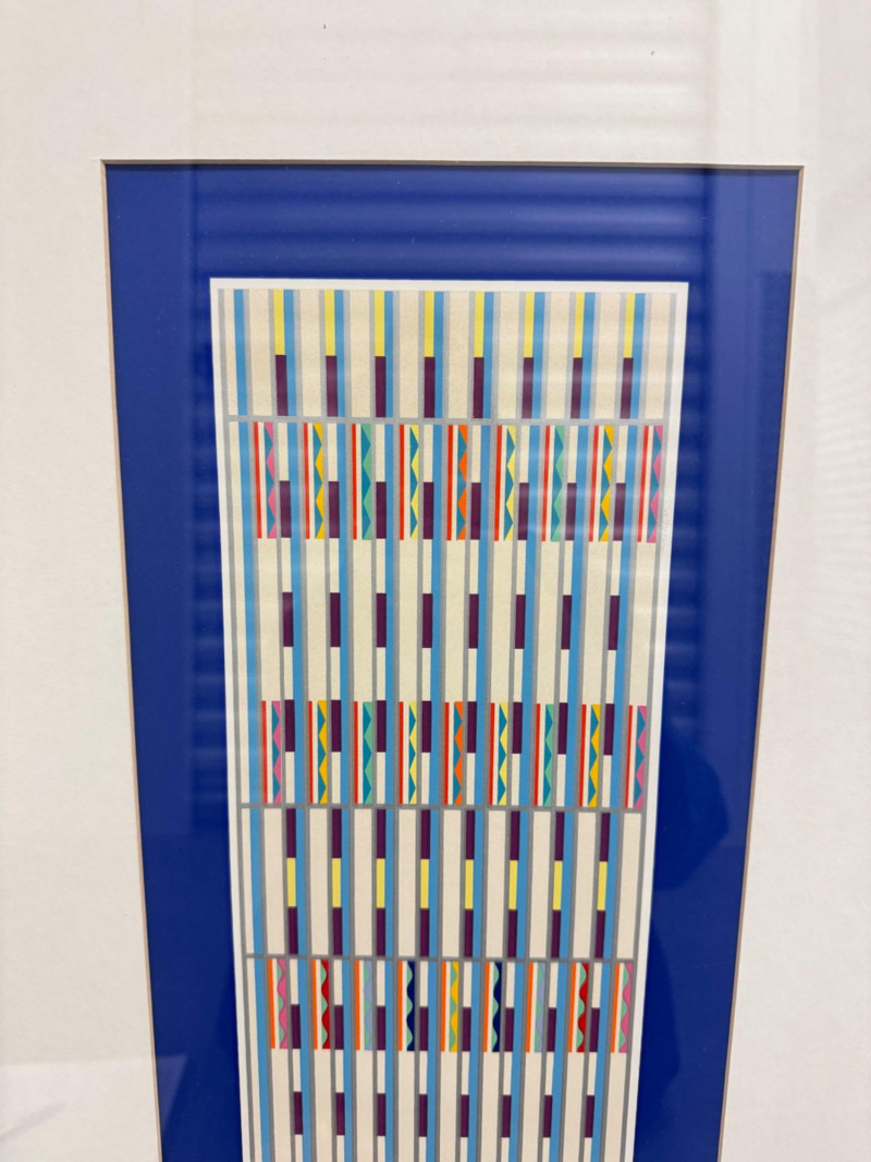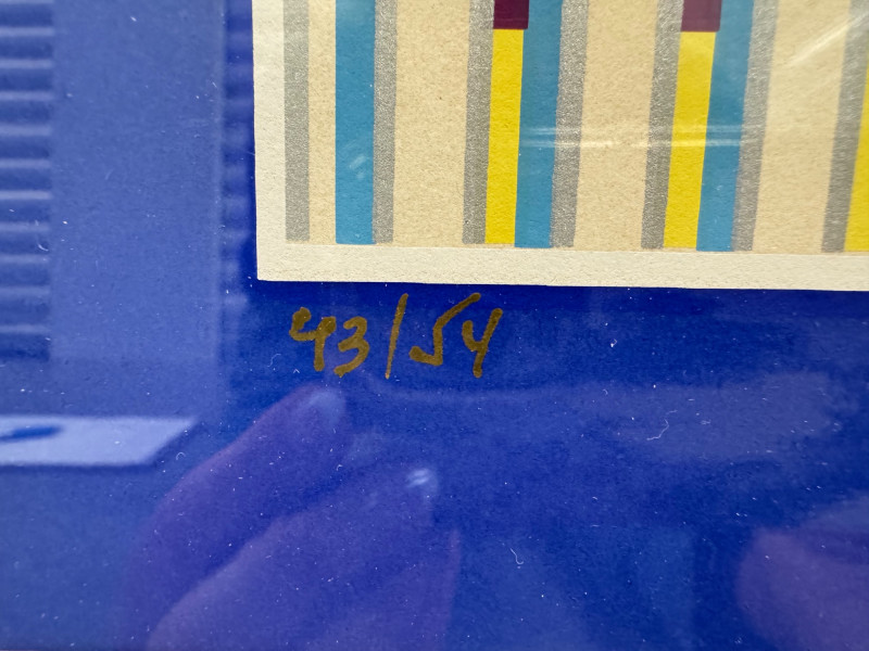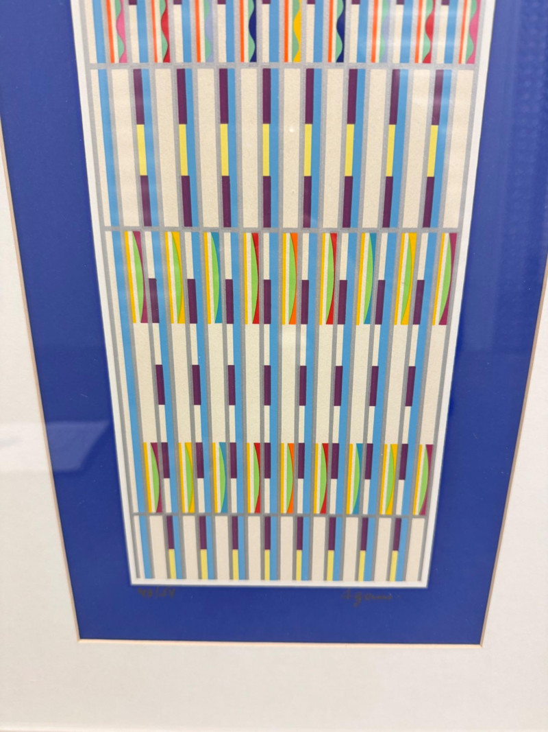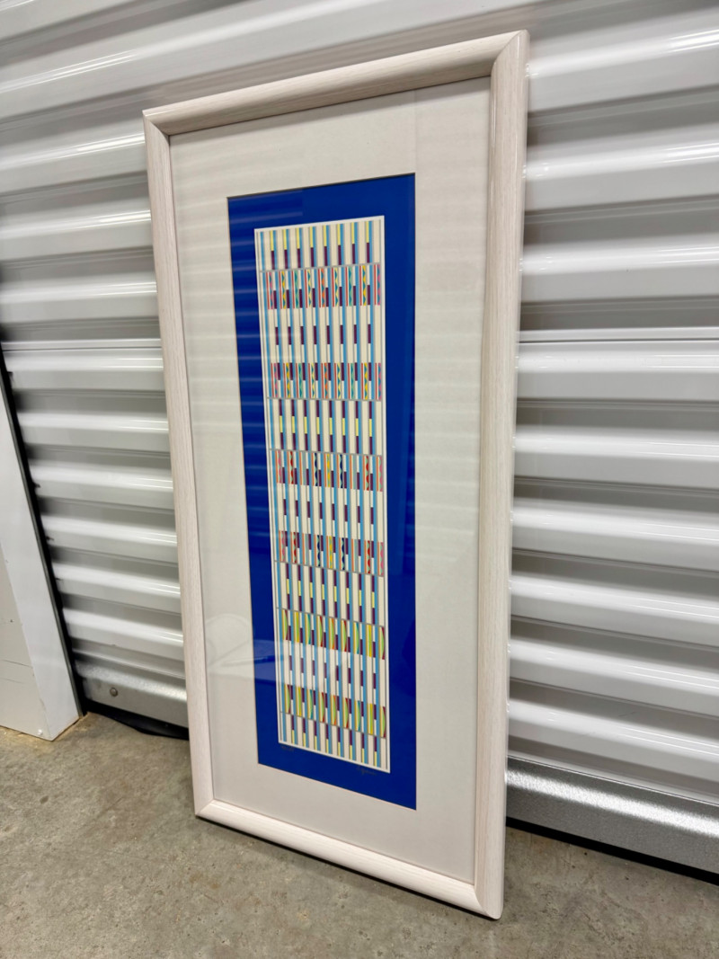 Yaacov Agam “Vertical Orchestration Blue” Framed, Signed & Numbered. PICK UP DETAILS Please plan accordingly—pickup times and locations are strictly by lot number, with no exceptions.