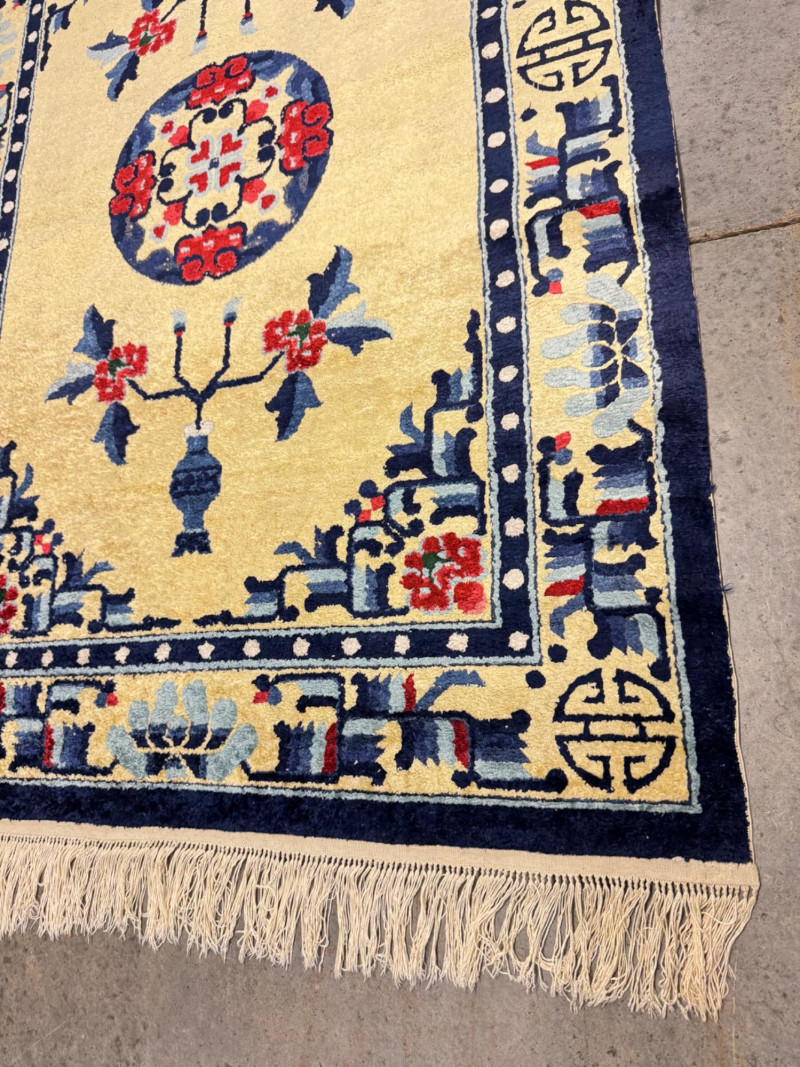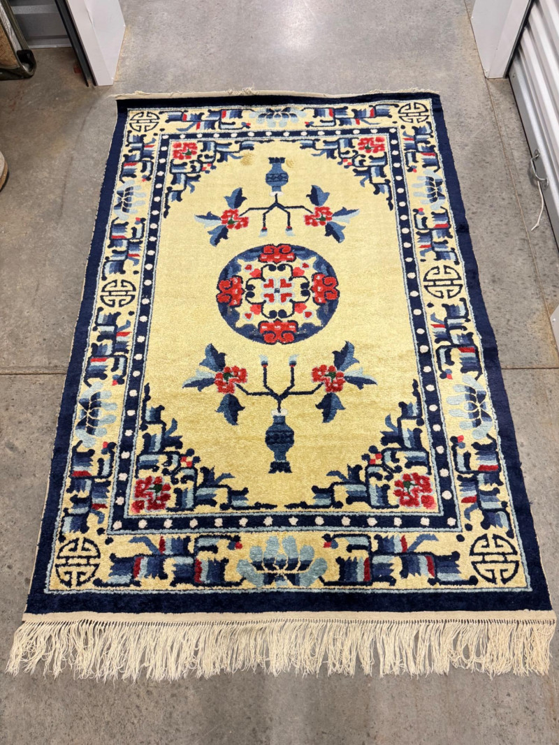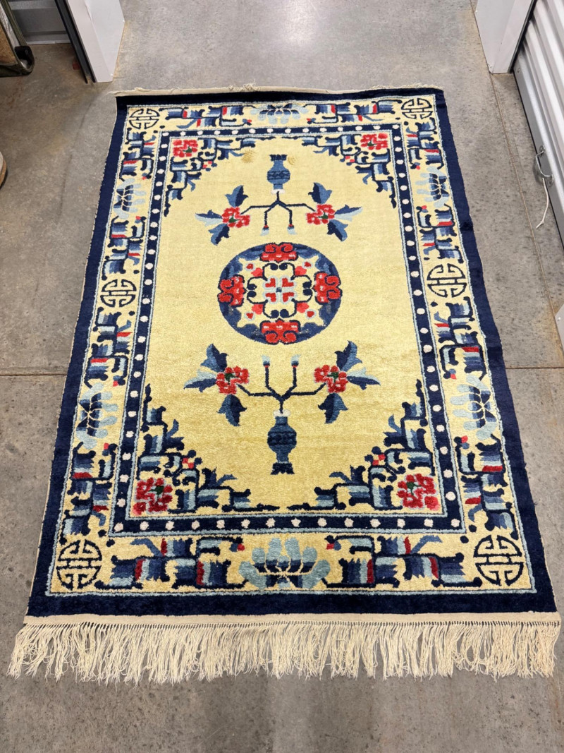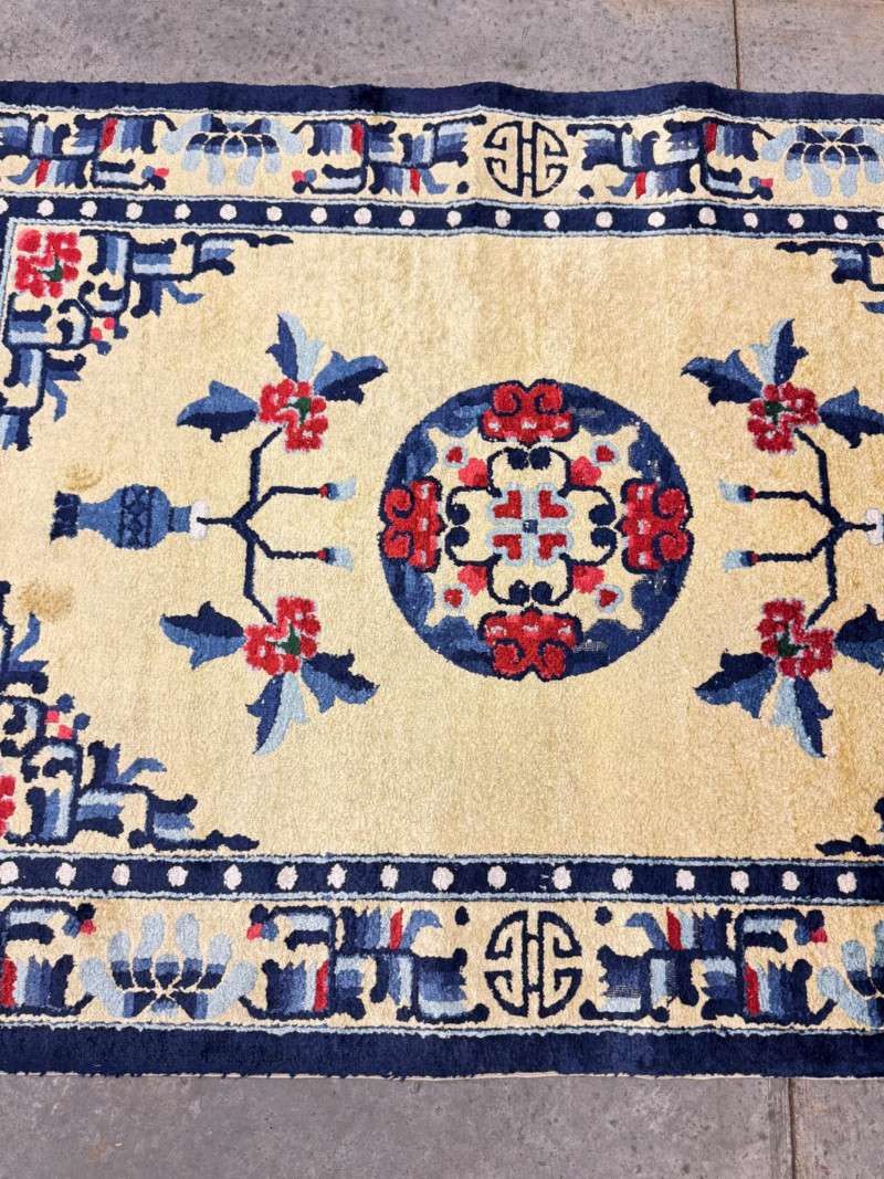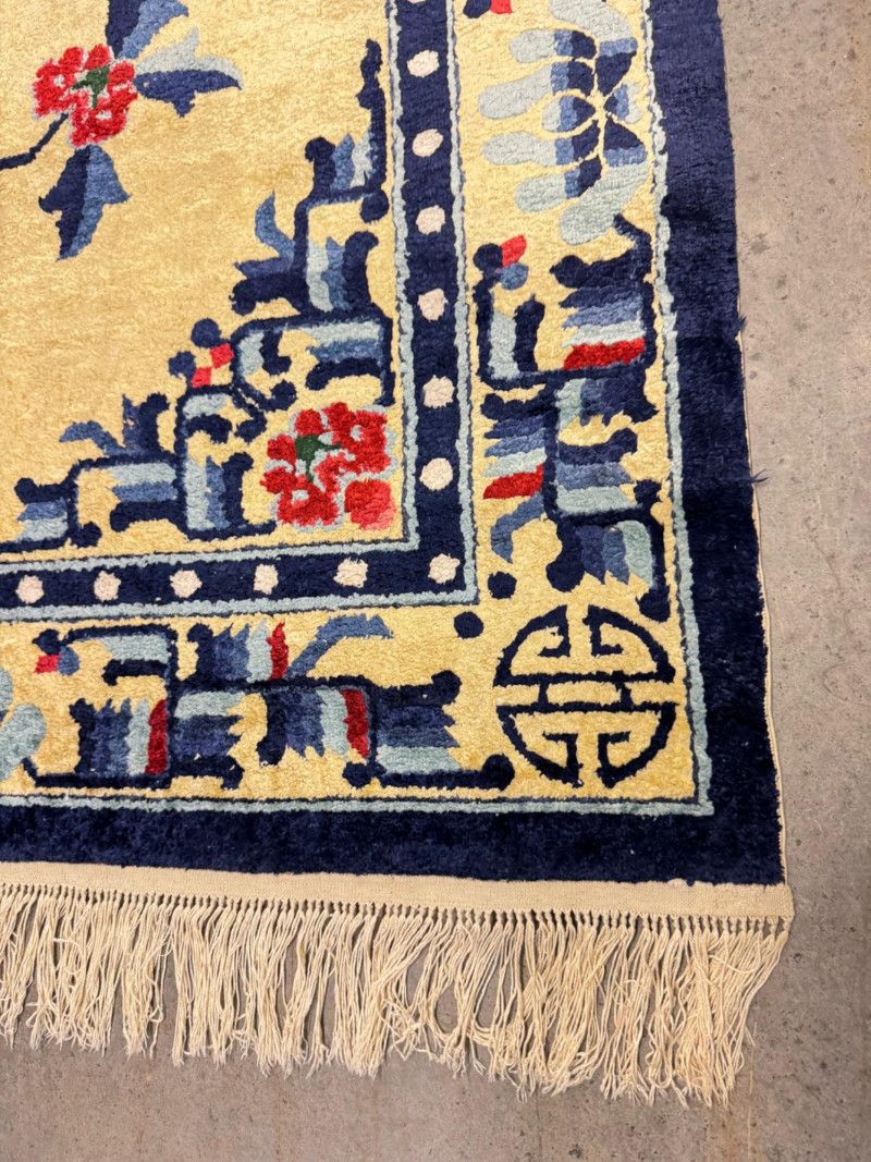 Material authenticity is not guaranteed. Although this rug appears to be silk, it is sold “as-is” without certification of its fiber content. PICK UP DETAILS Please plan accordingly—pickup times and locations are strictly by lot number, with no exceptions.