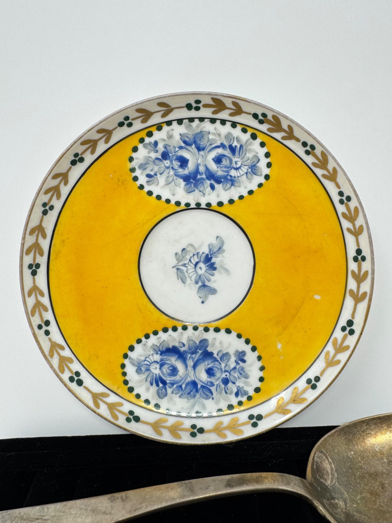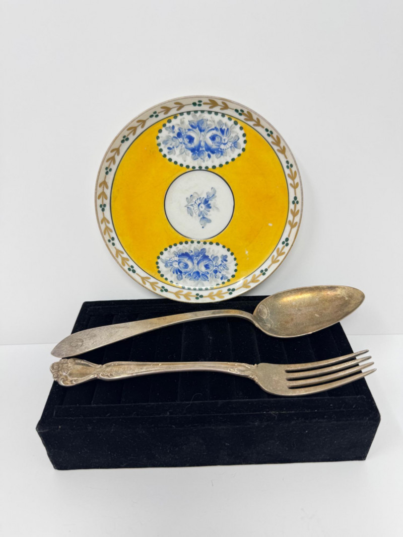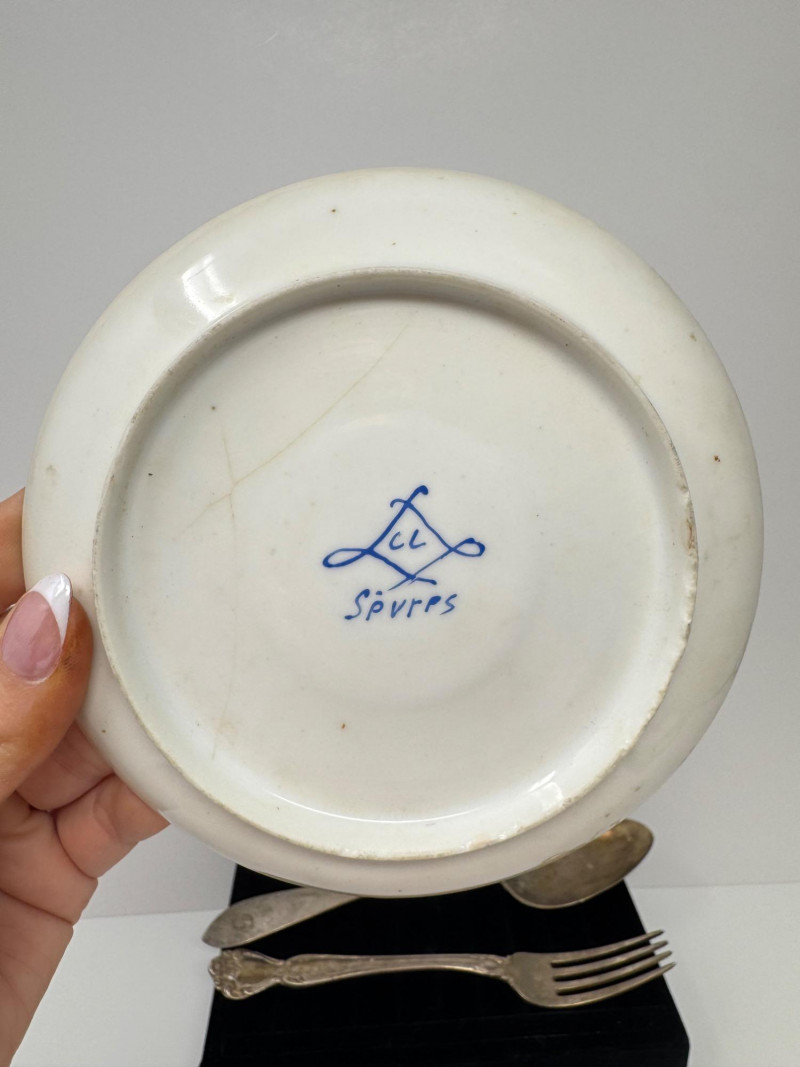 Antique Hand-Painted Sèvres Saucer + Sterling Silver Flatware 116.45g. PICK UP DETAILS Please plan accordingly—pickup times and locations are strictly by lot number, with no exceptions.