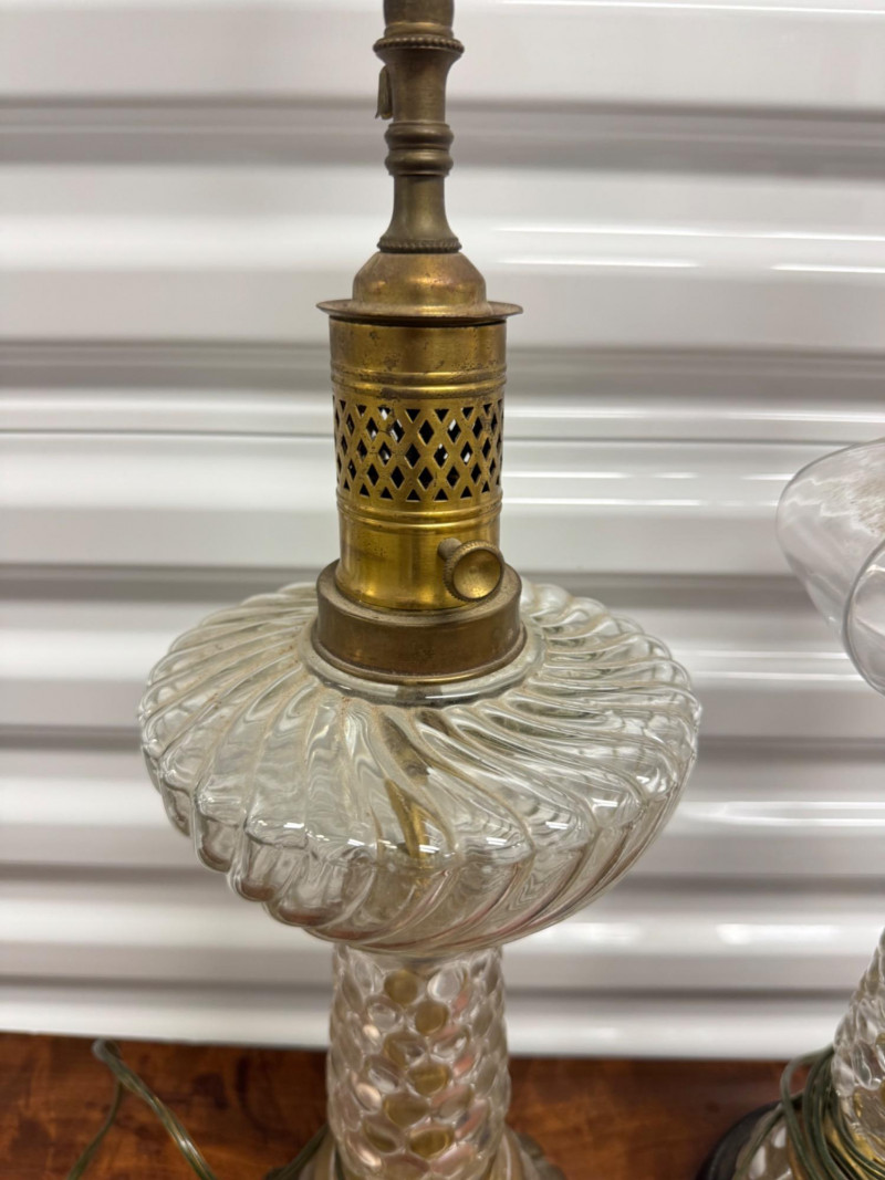 Lot # 120 - Antique Electrified Oil Lamps, Victorian Empire Style & Hobnail Bases