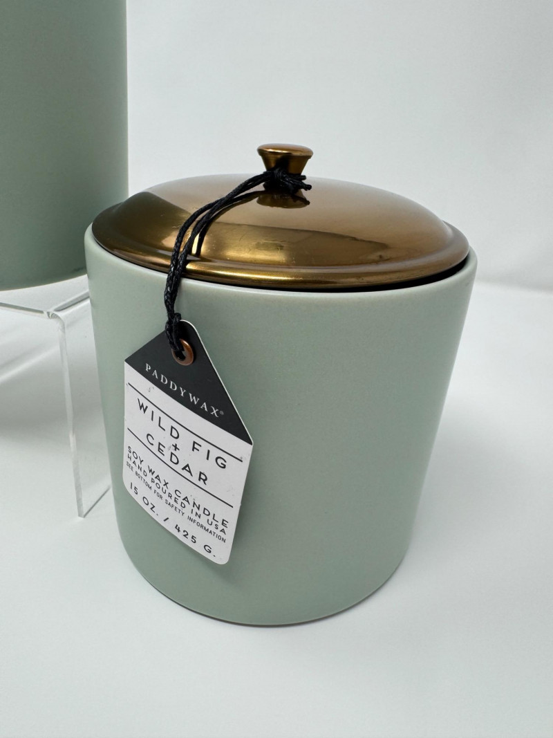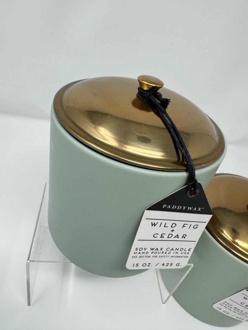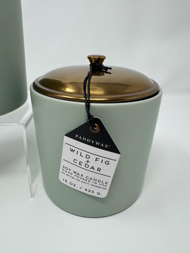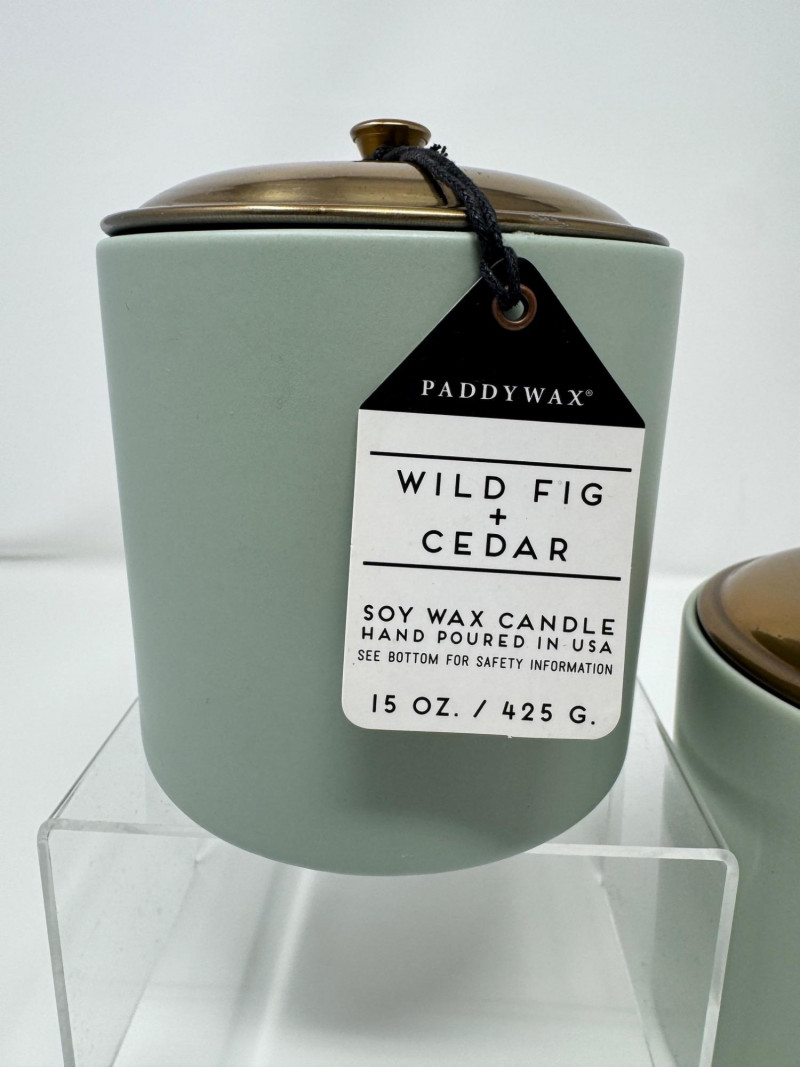 2 Brand New 15oz Paddywax Soy Candles- Wild Fig & Cedar PICK UP DETAILS Please plan accordingly—pickup times and locations are strictly by lot number, with no exceptions.