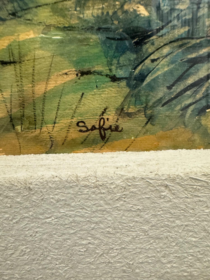 Signed Original Painting by Sofie - Green House Country Scene. 29 x 23” PICK UP DETAILS Please plan accordingly—pickup times and locations are strictly by lot number, with no exceptions.