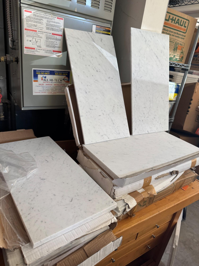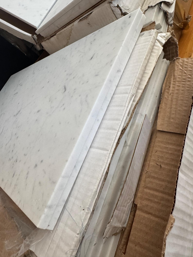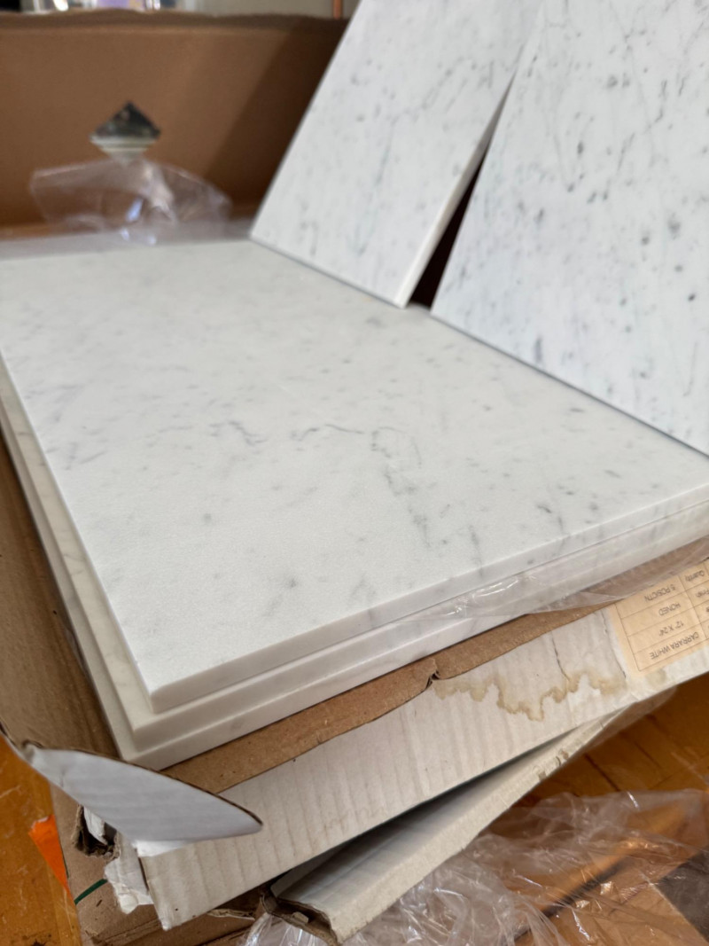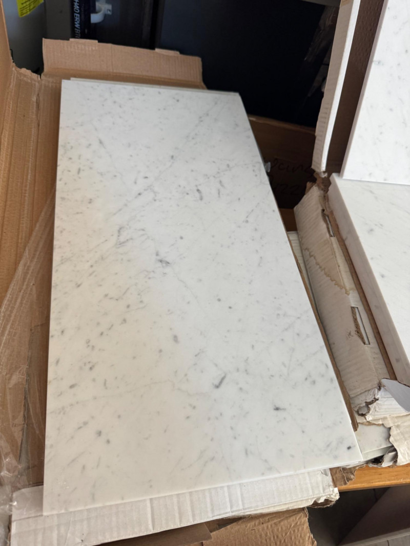 Honed surfaces show natural veining and slight color variations characteristic of Carrara. PICK UP DETAILS Date: Friday, June 13, 2025