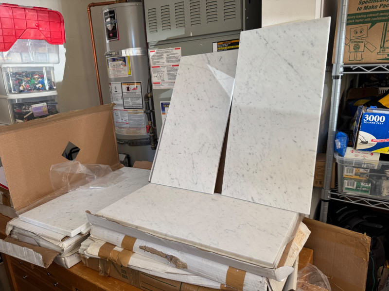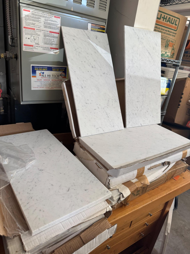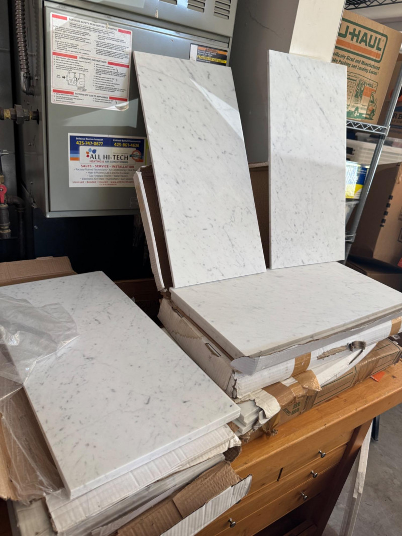 Lot # 138 - 30+ Large Carrara White Honed Marble Slabs 12×24 (Bulk Lot)