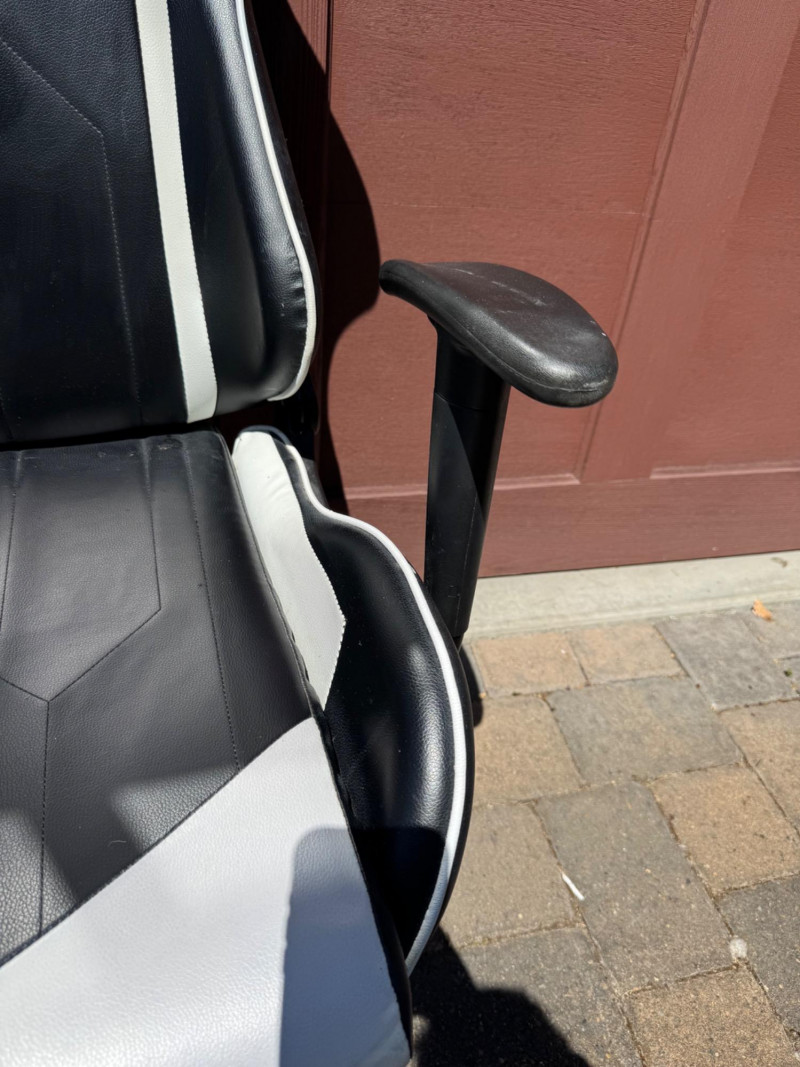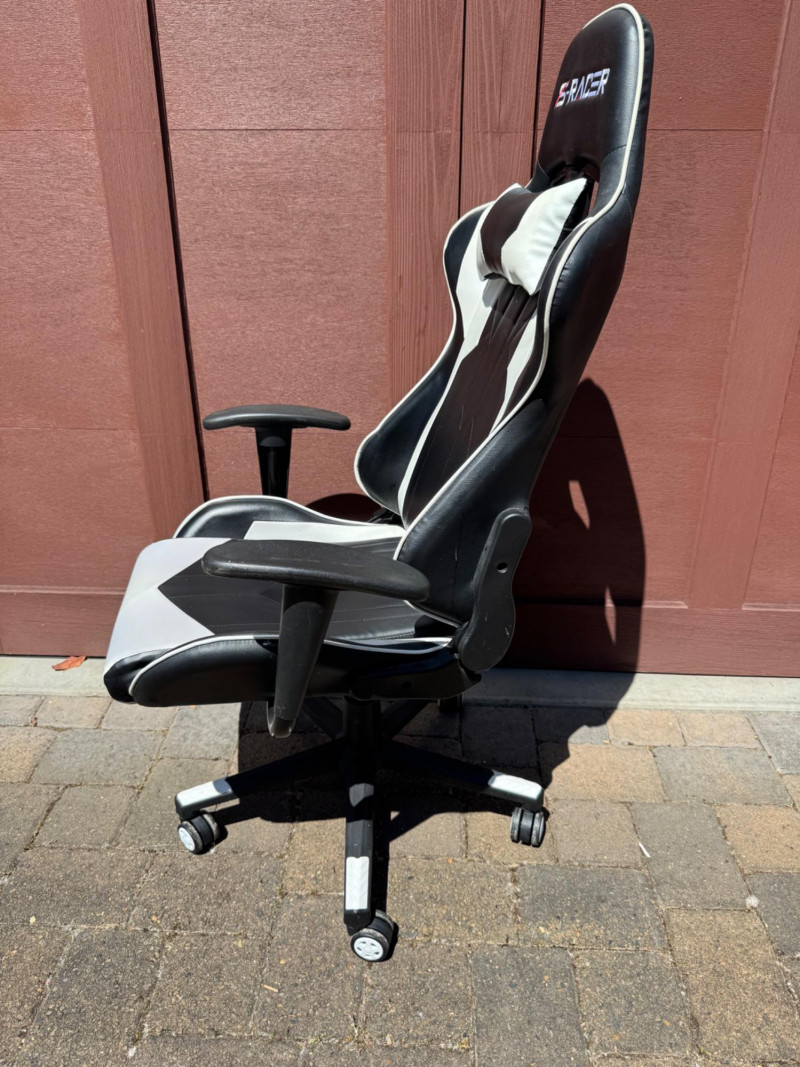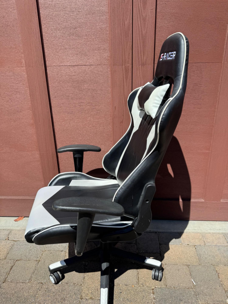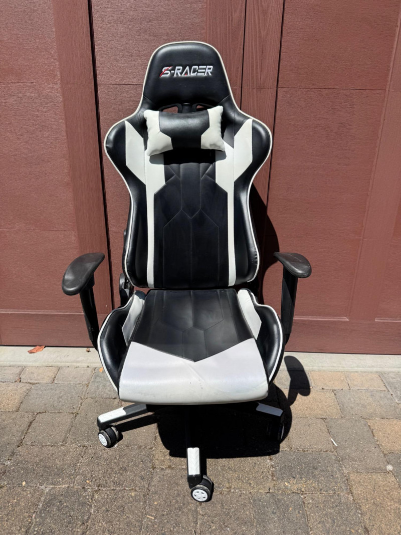 S‐Racer Black & White PU Leather Classic Gaming Chair. Adjustable Height, Swivel, Ergonomic, Head Support Seat Back Height 32 in Seat Depth 20.2 in Seat Width 20.5 in Please Note: One arm of the item is a little wiggly. PICK UP DETAILS Date: Friday, June 13, 2025