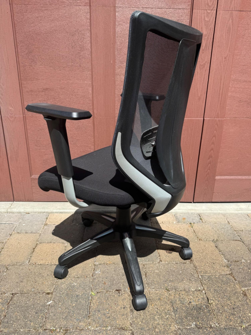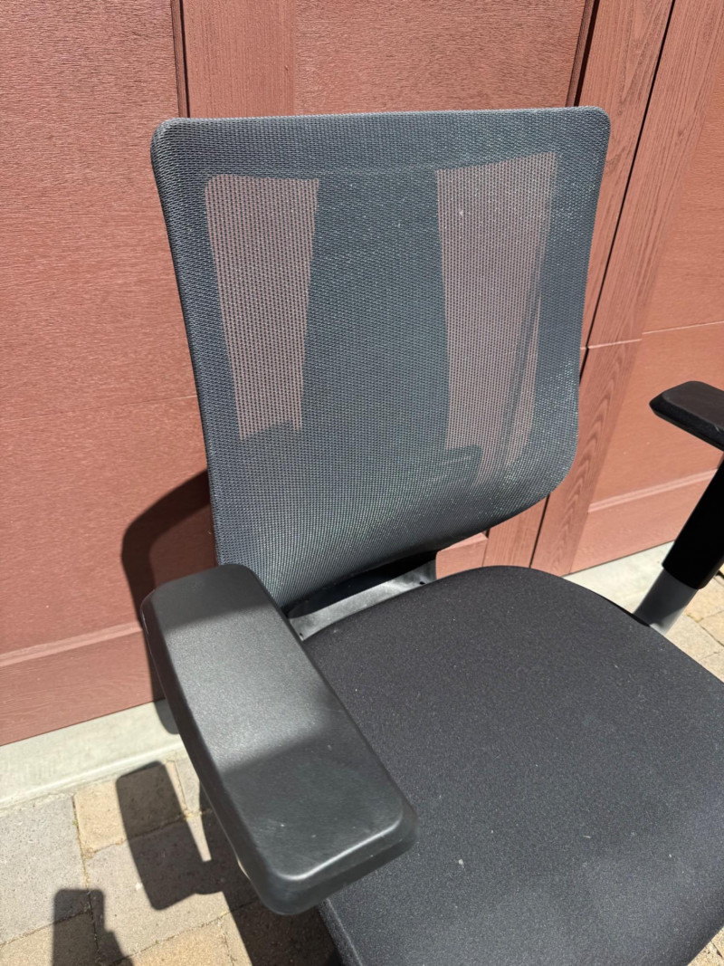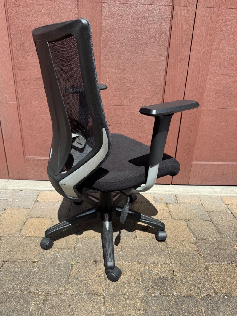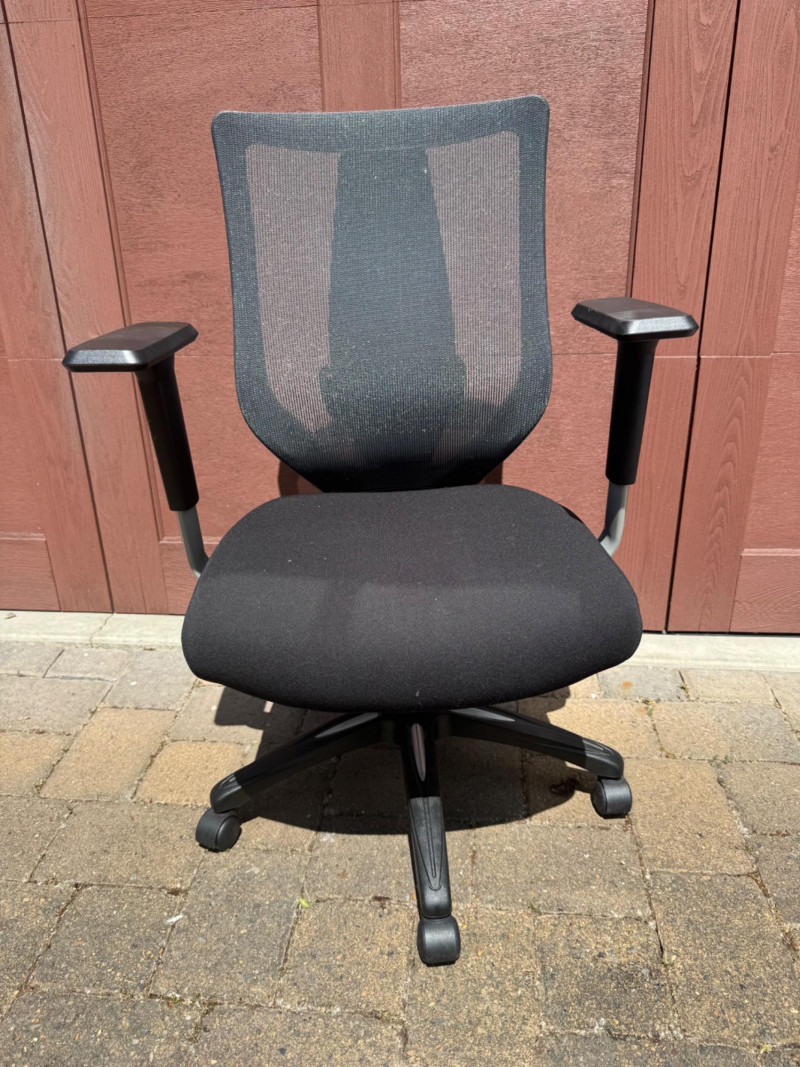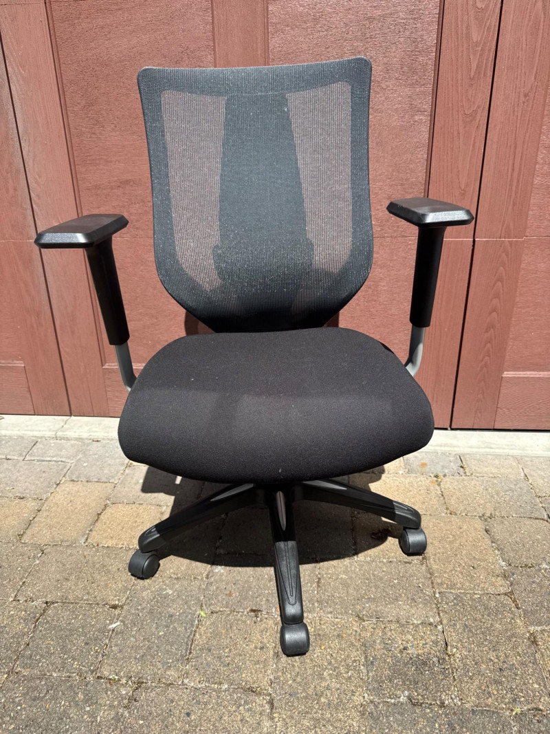 Ergonomic Mesh‐Back Office Chair w/ Padded Black Fabric Cushion. 27” Wide 22” Deep PICK UP DETAILS Date: Friday, June 13, 2025