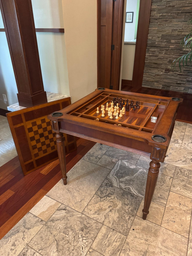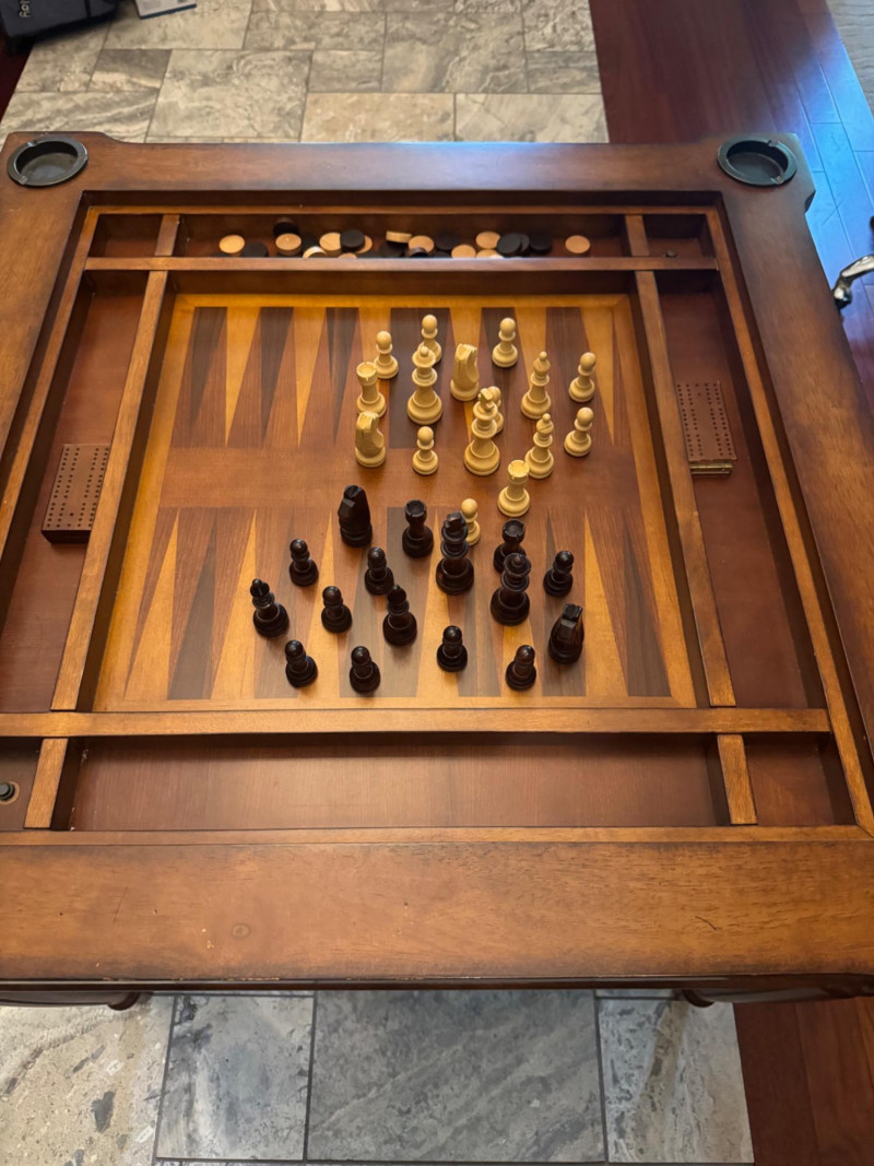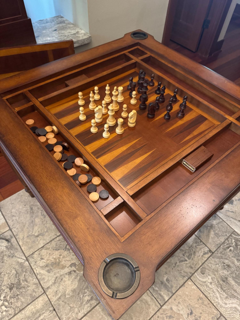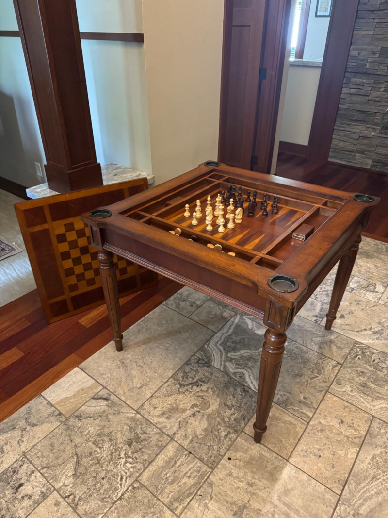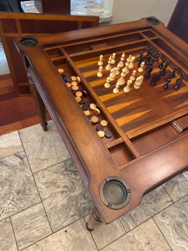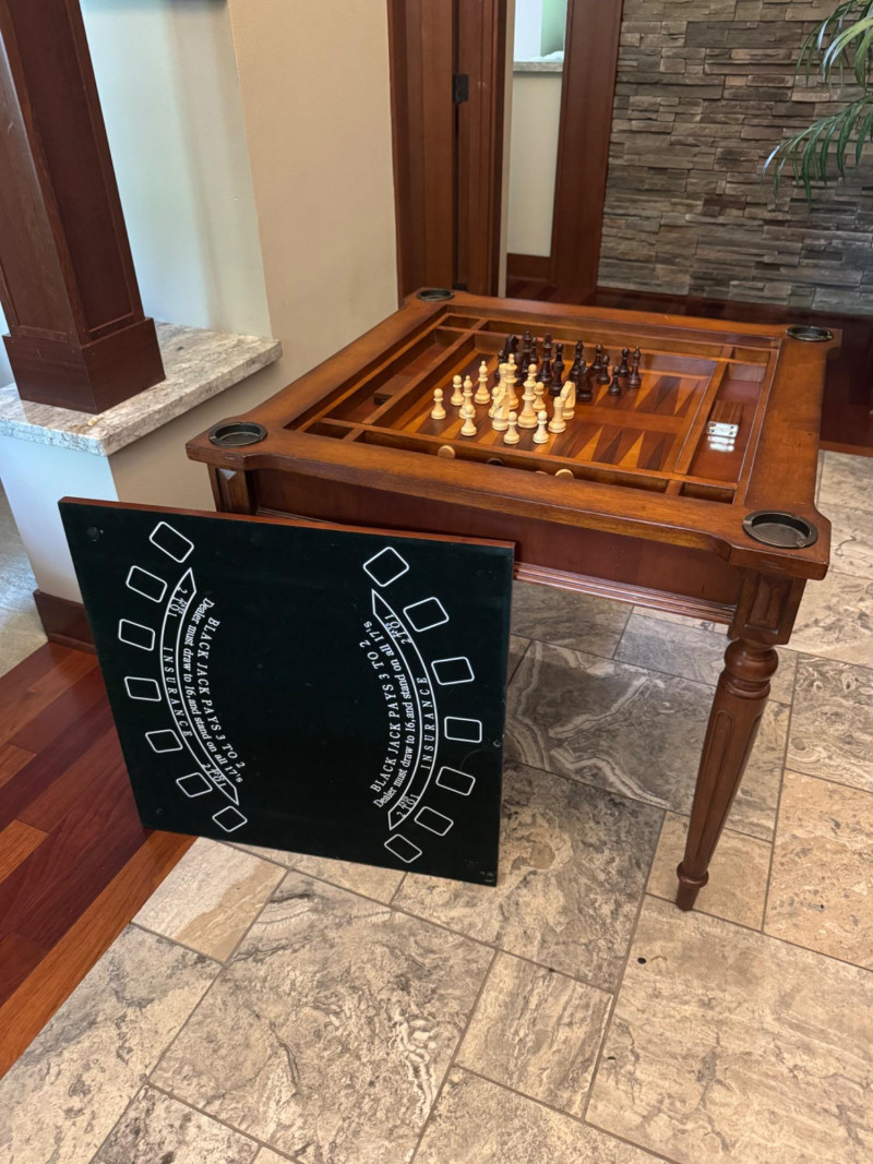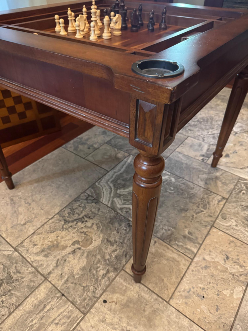 Lot # 177 - Multi‐Game Game Table w/ Chess, Backgammon, Poker, Cribbage & Checkers