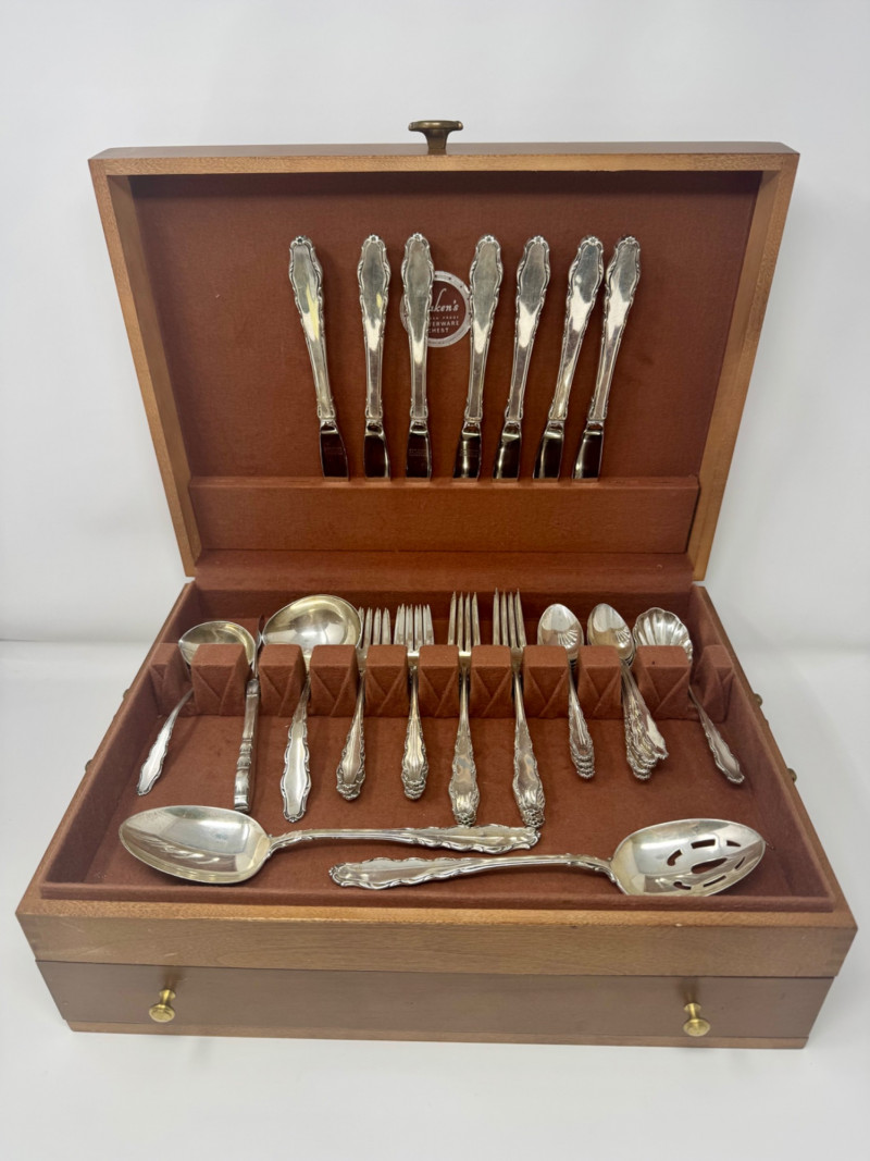 Lot # 1 - Reed & Barton Sterling Silver Flatware Set in Wooden Case - 34 Pieces