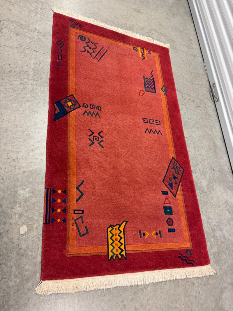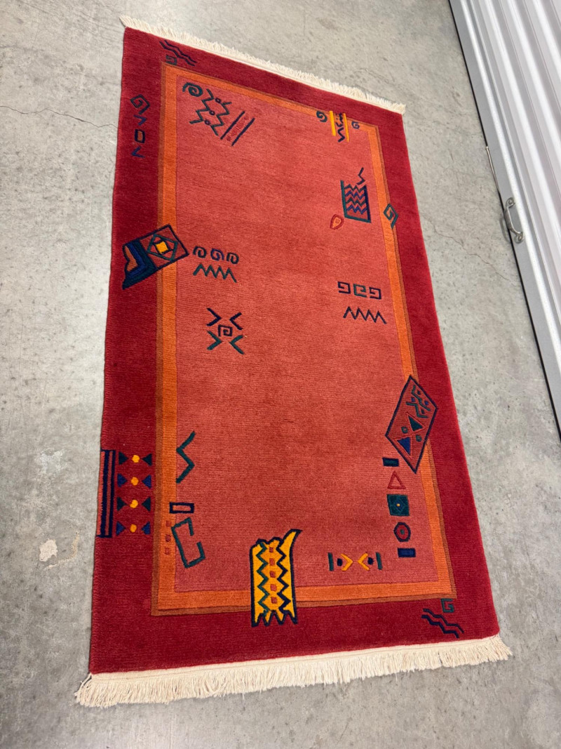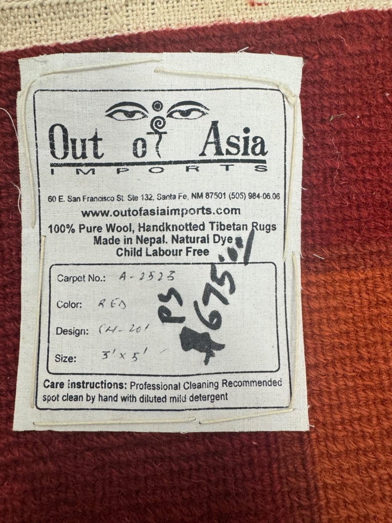 Out of Asia Red Tibetan Wool Rug – Hand Knotted, Great Condition. 3’ x 5’