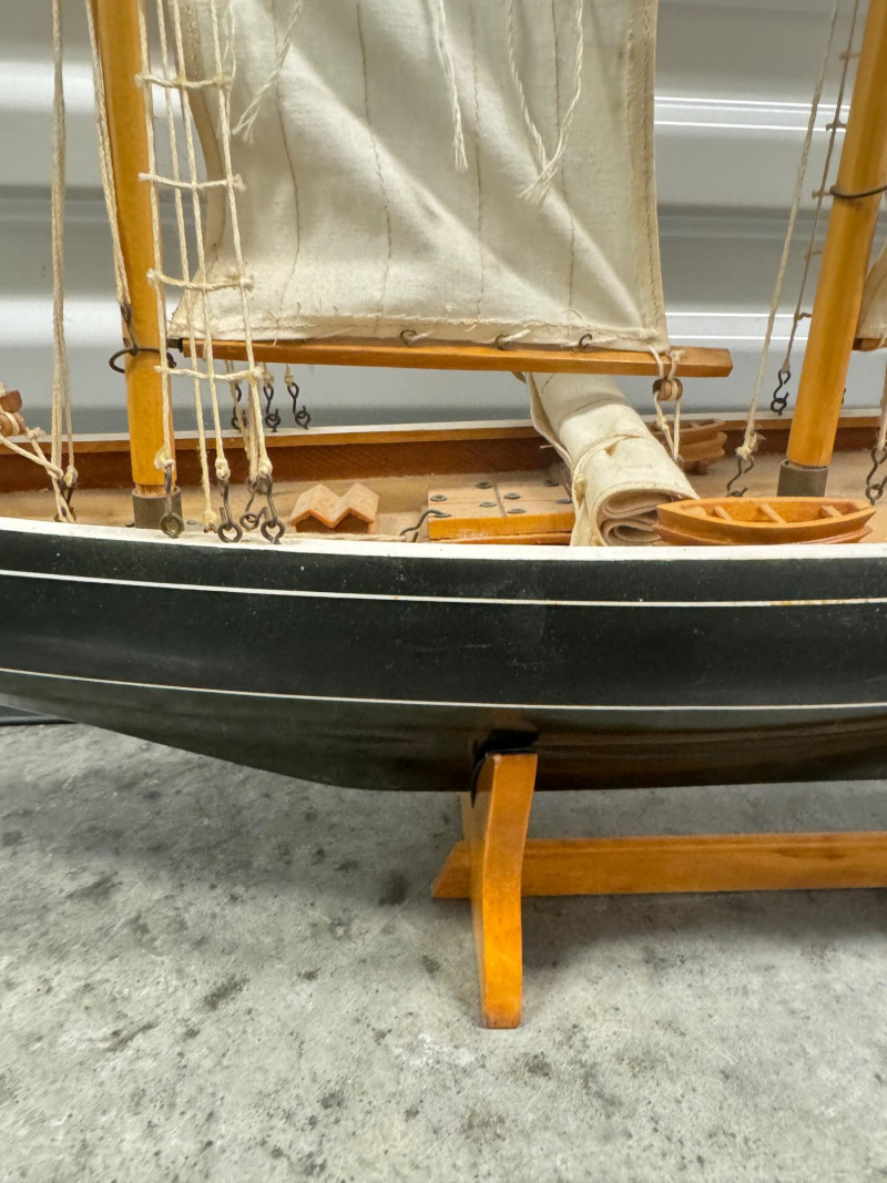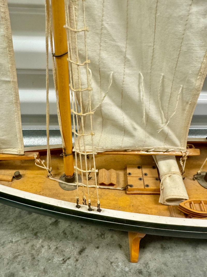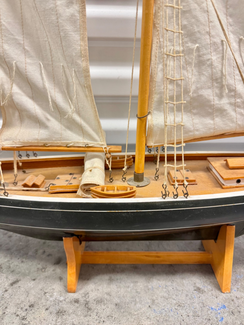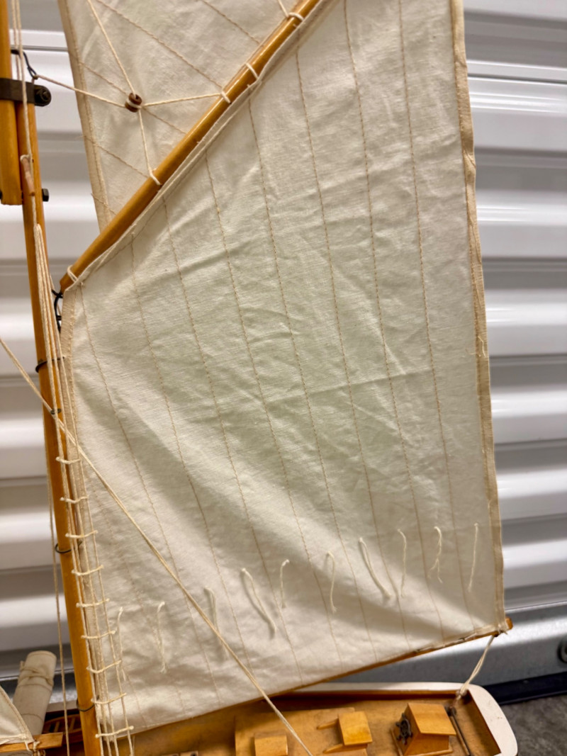 Lot # 22 - Handcrafted Wooden Sailboat Model w/ Canvas Sails