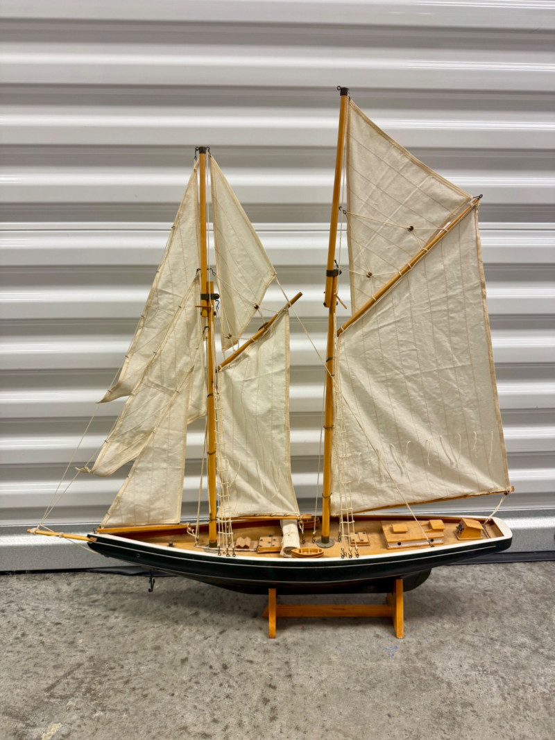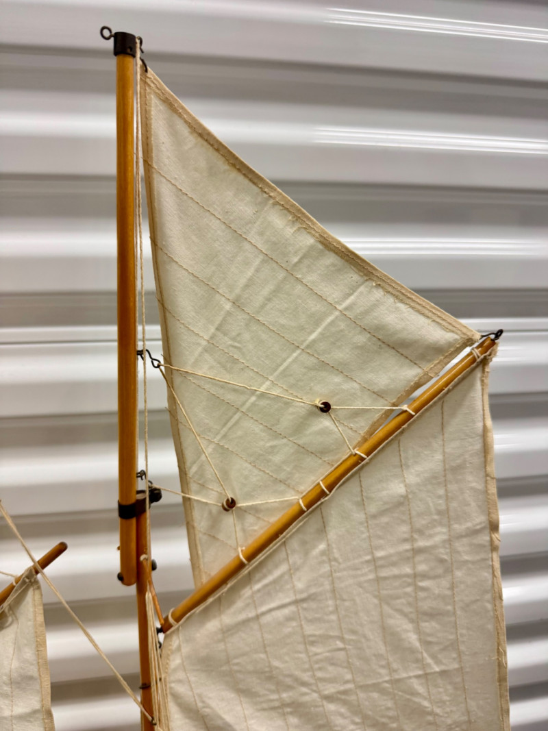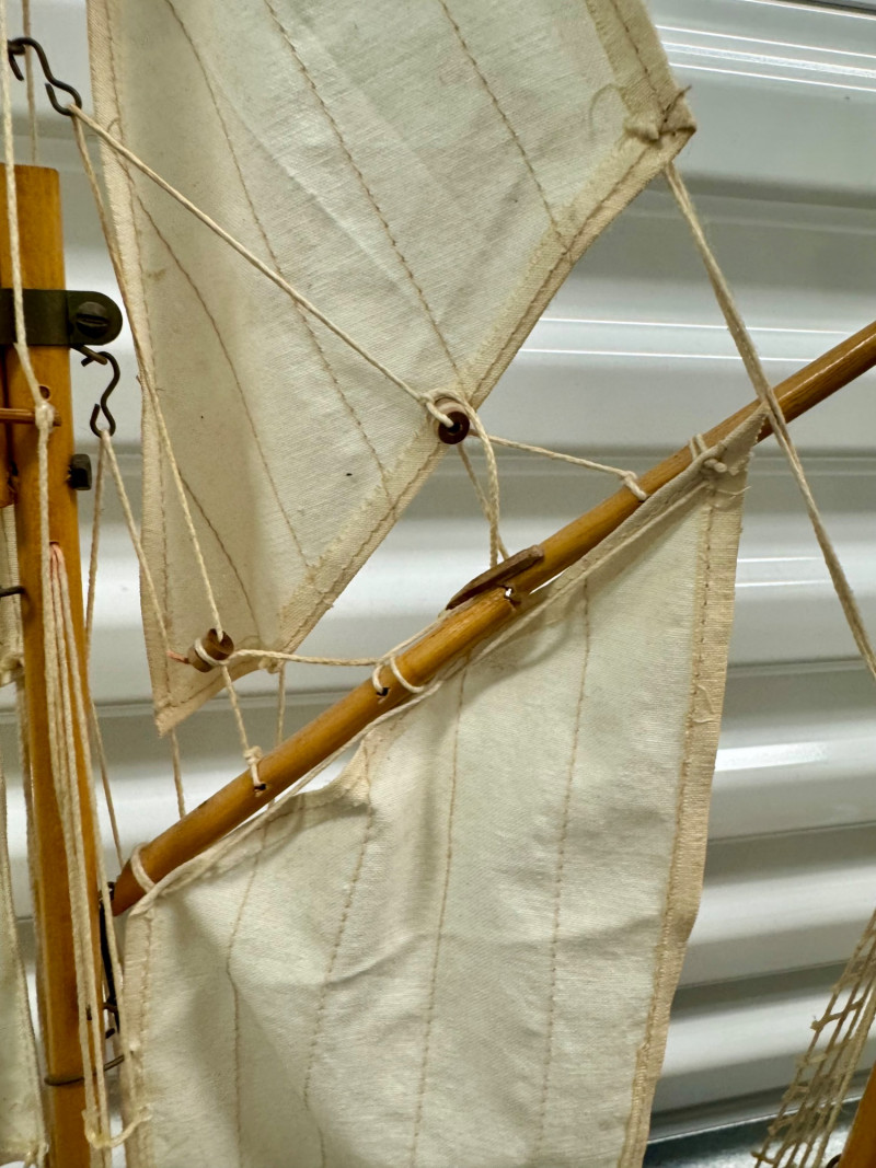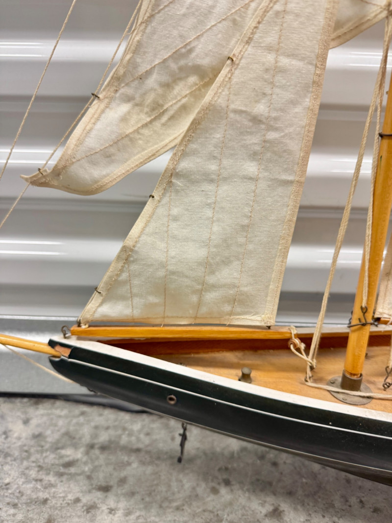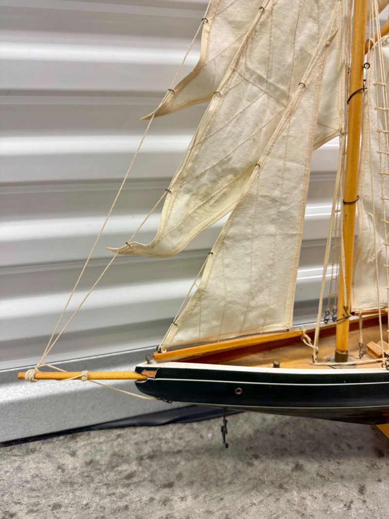 Lot # 22 - Handcrafted Wooden Sailboat Model w/ Canvas Sails