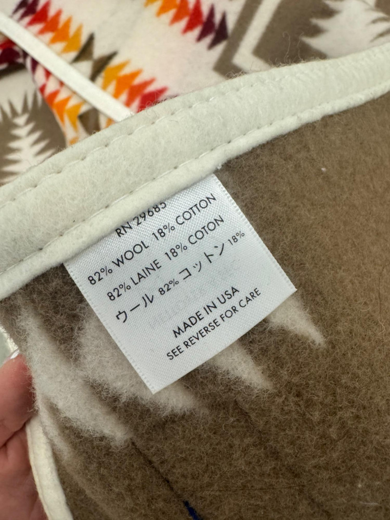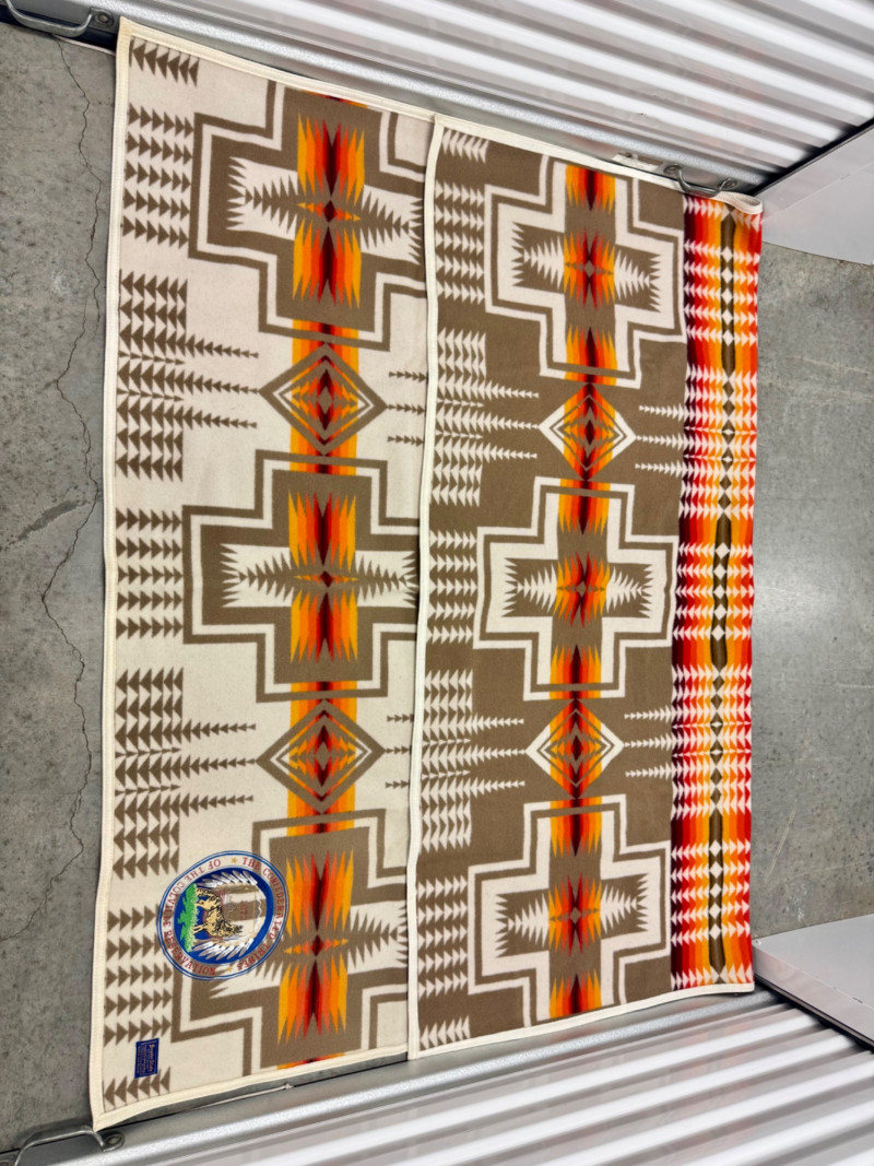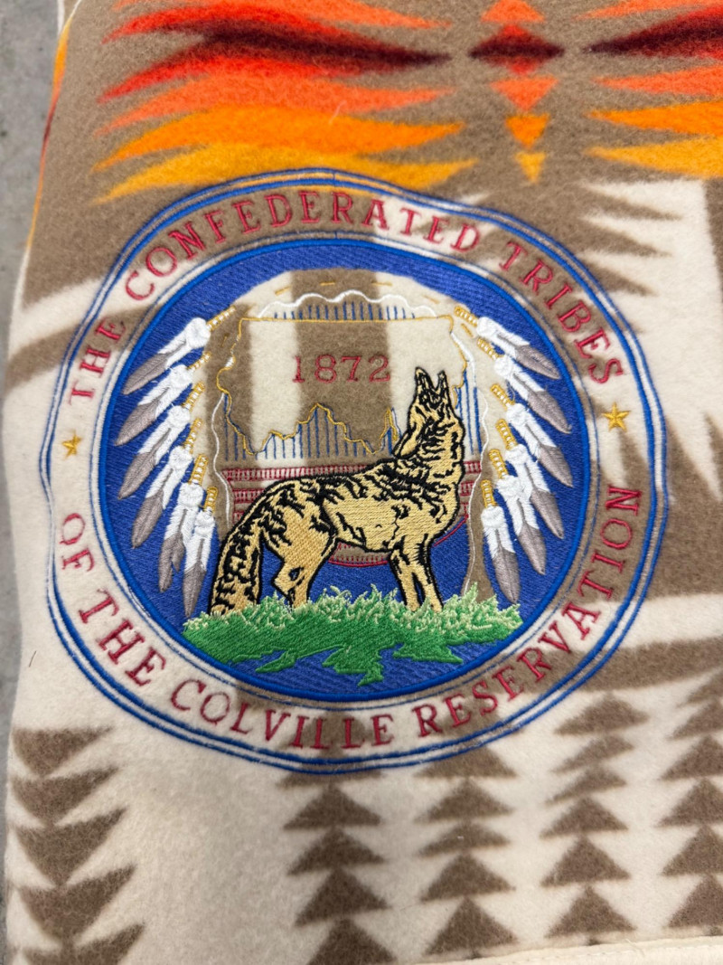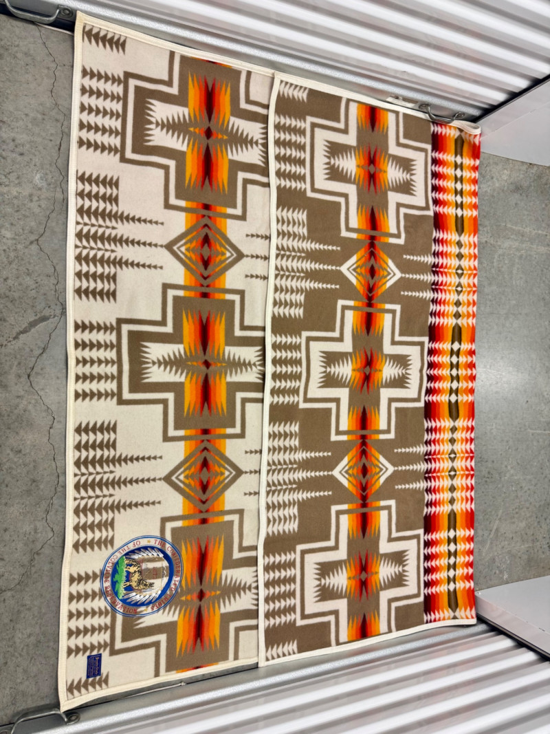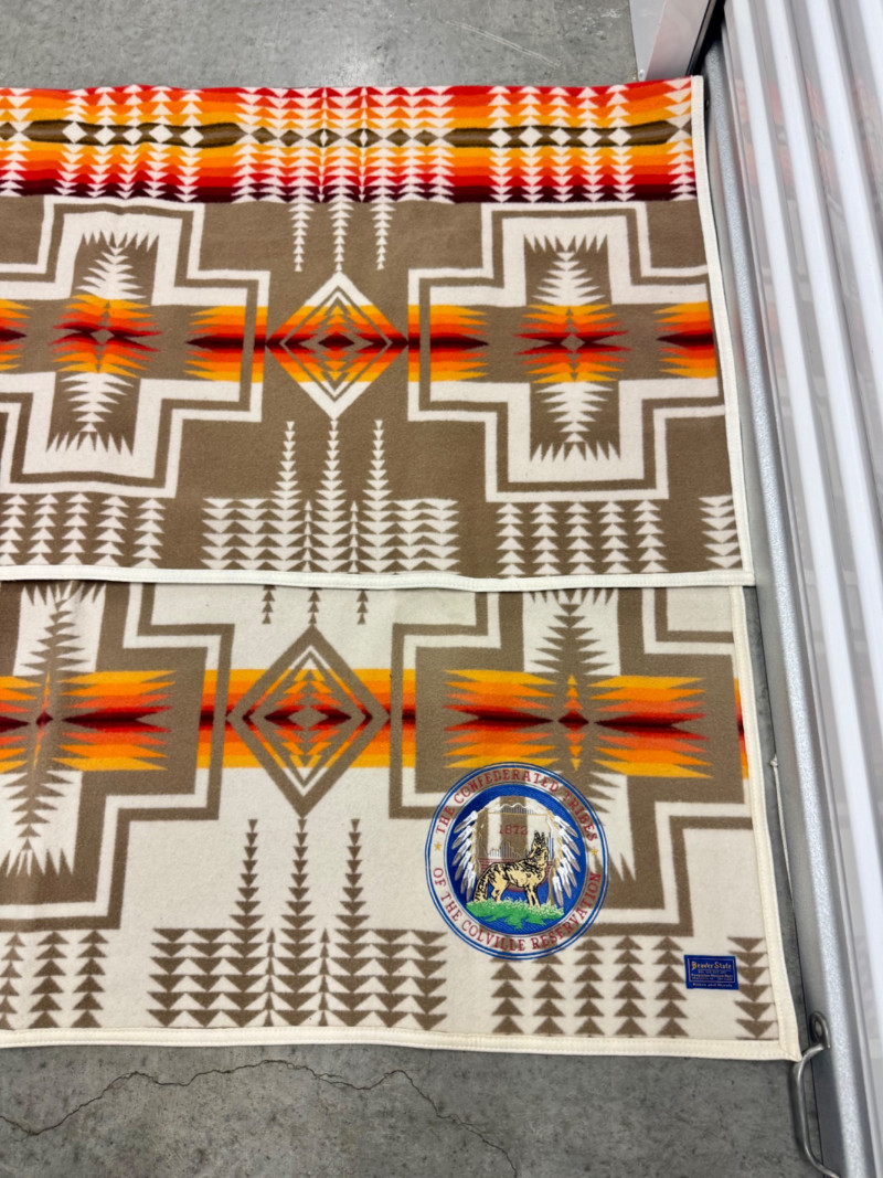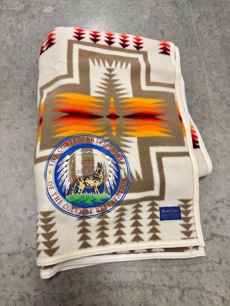 Pendleton Beaver State Wool Blanket – Colville Tribe Embroidered Patch. 65 x 80”