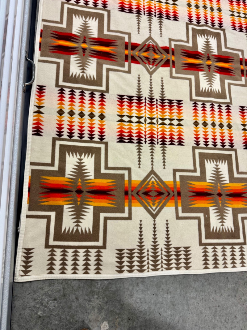 Vintage Pendleton Beaver State Wool Blanket – Bold Geometric Design. 76 x 64”