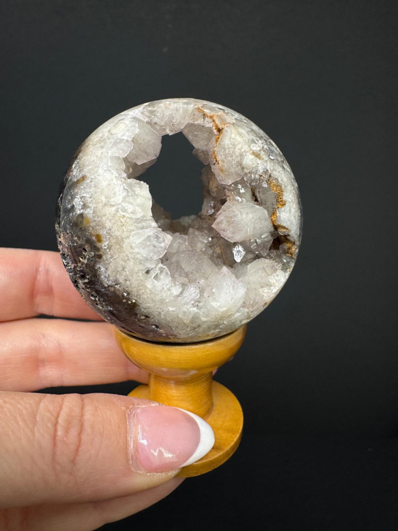 Lot # 28 - 2” Open Geode Sphere Crystal Ball on Stand – Sparkly, Great Shape