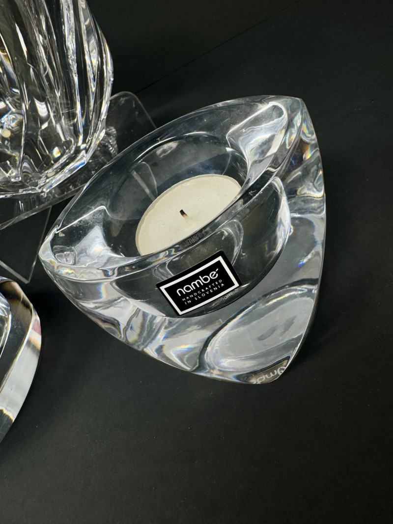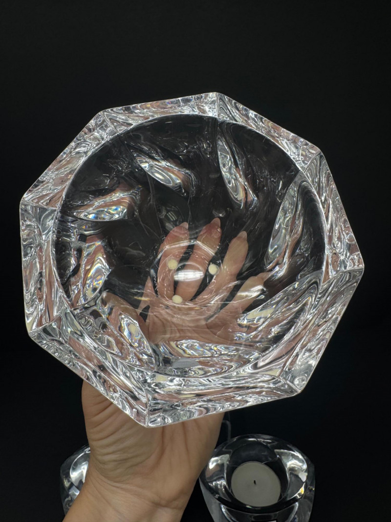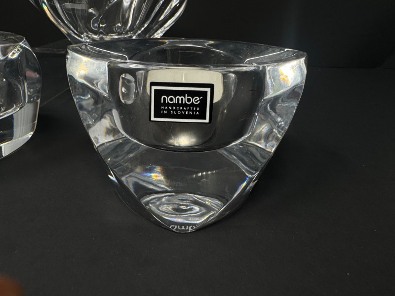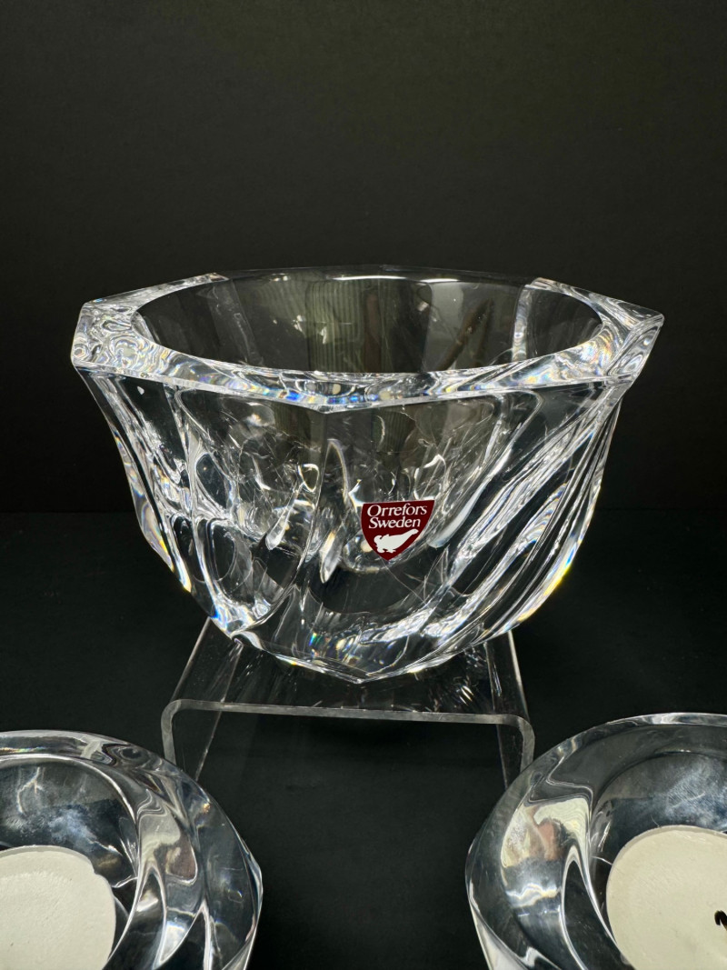 Lot # 29 - Nambe Crystal Votive Candle Holders & Signed Orrefors "Residence" Bowl