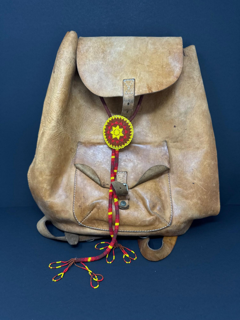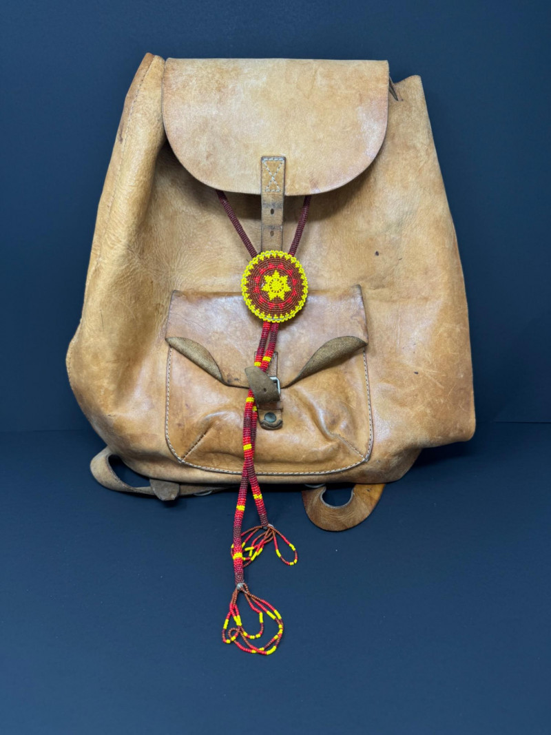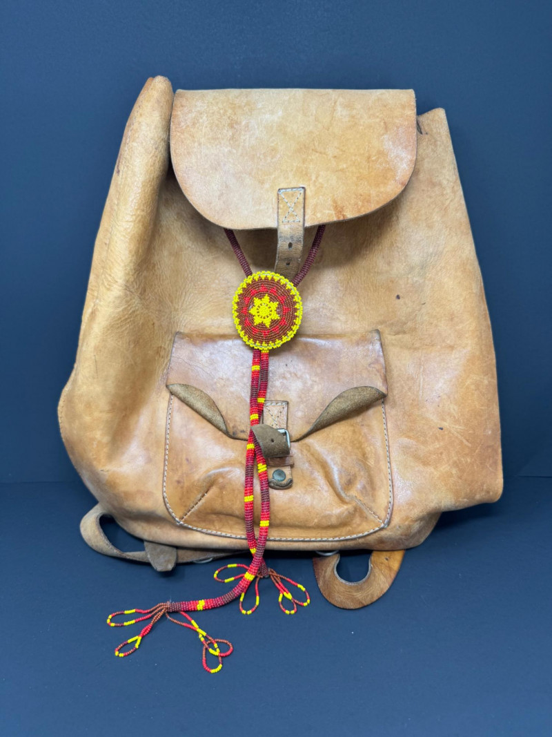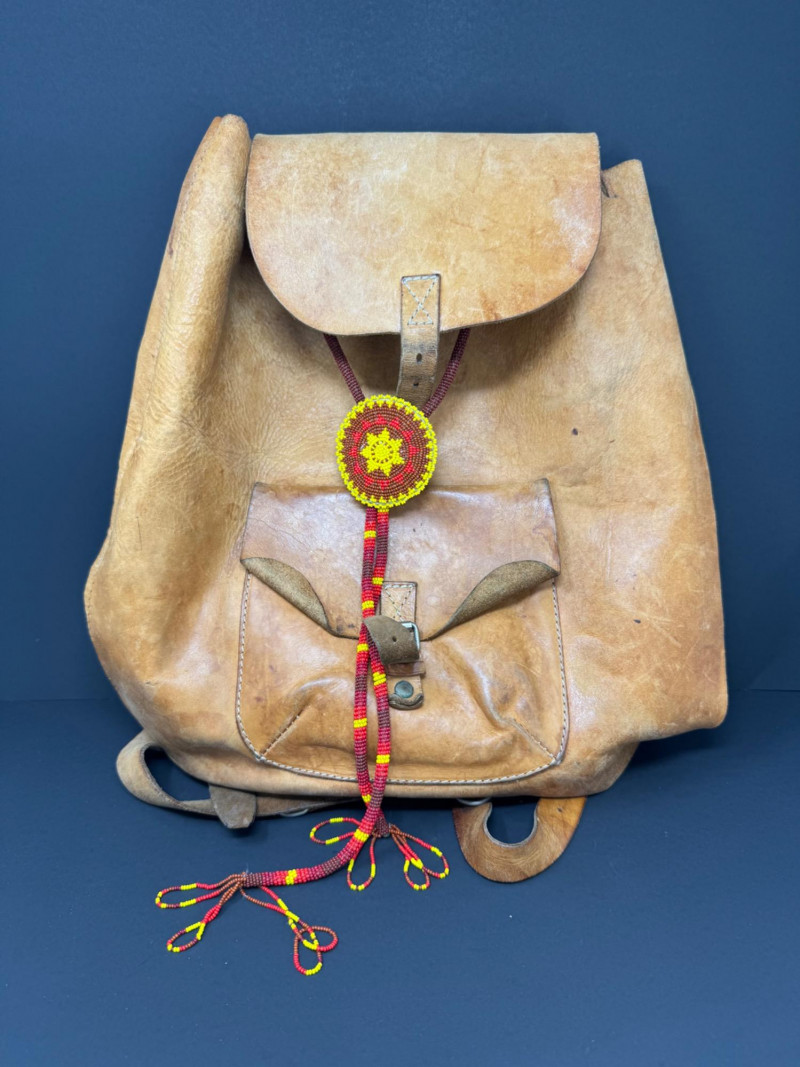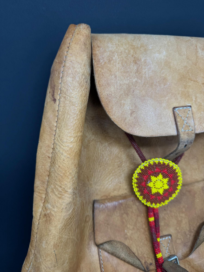 Lot # 31 - Vintage Leather Backpack w/ Beaded Rosette Accent