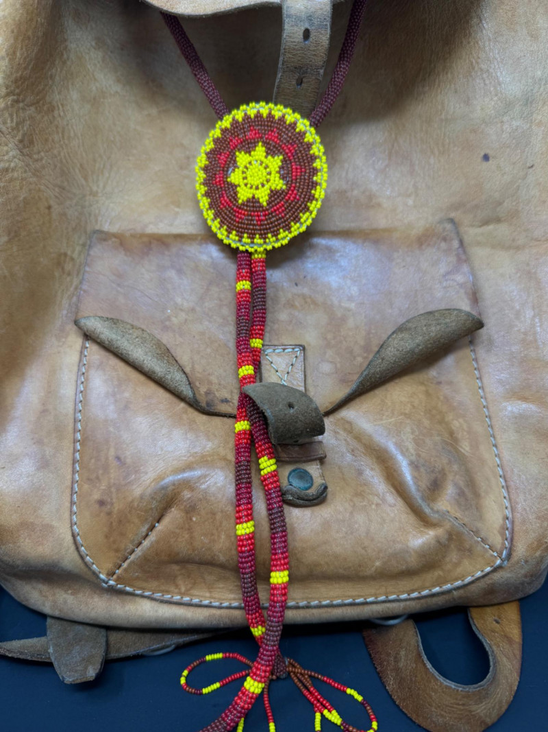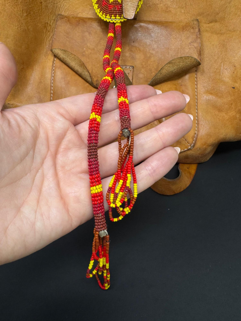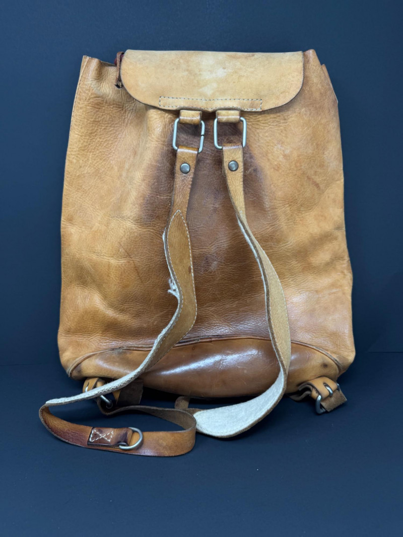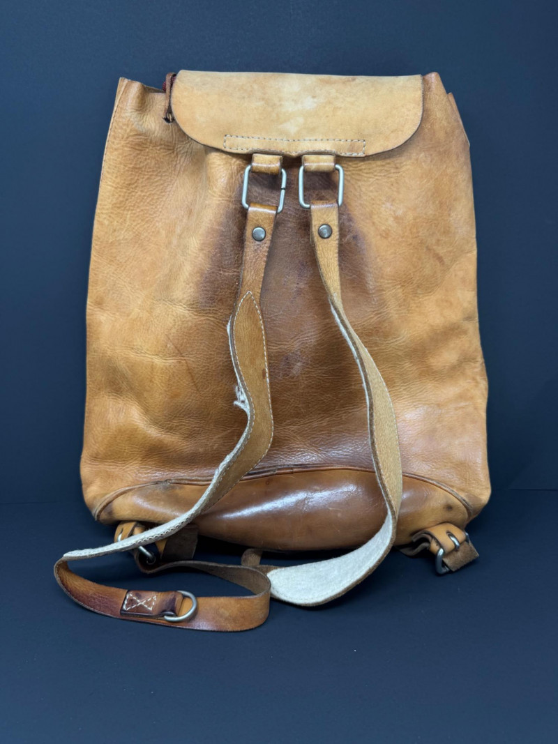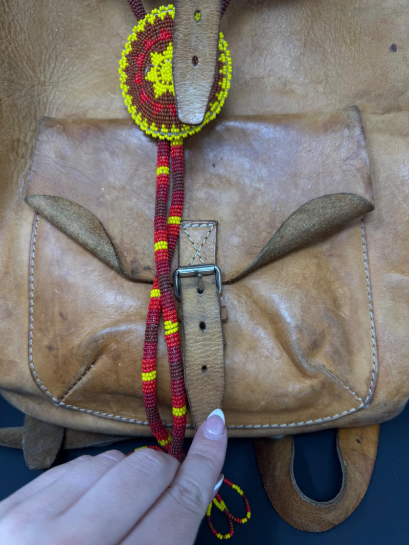Lot # 31 - Vintage Leather Backpack w/ Beaded Rosette Accent