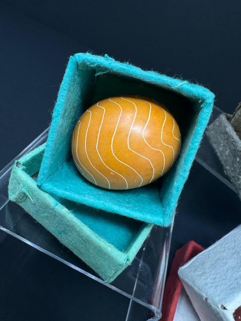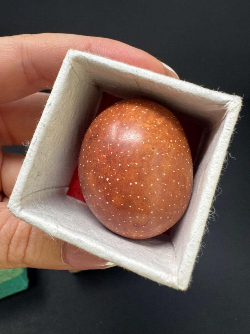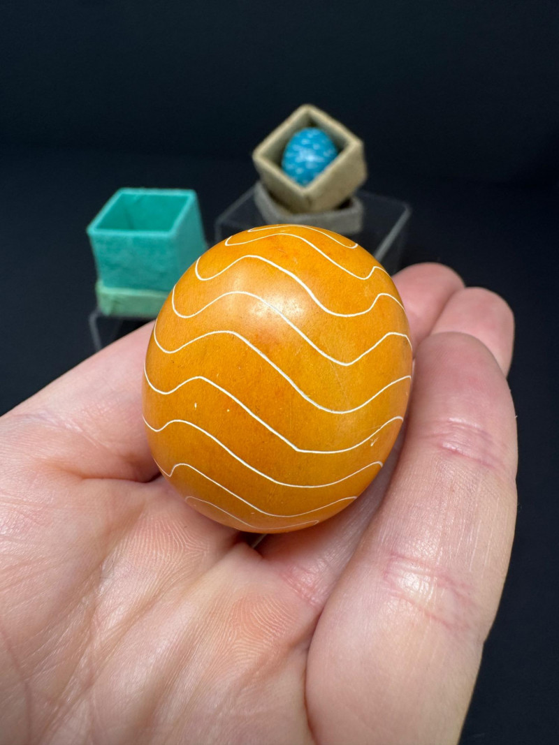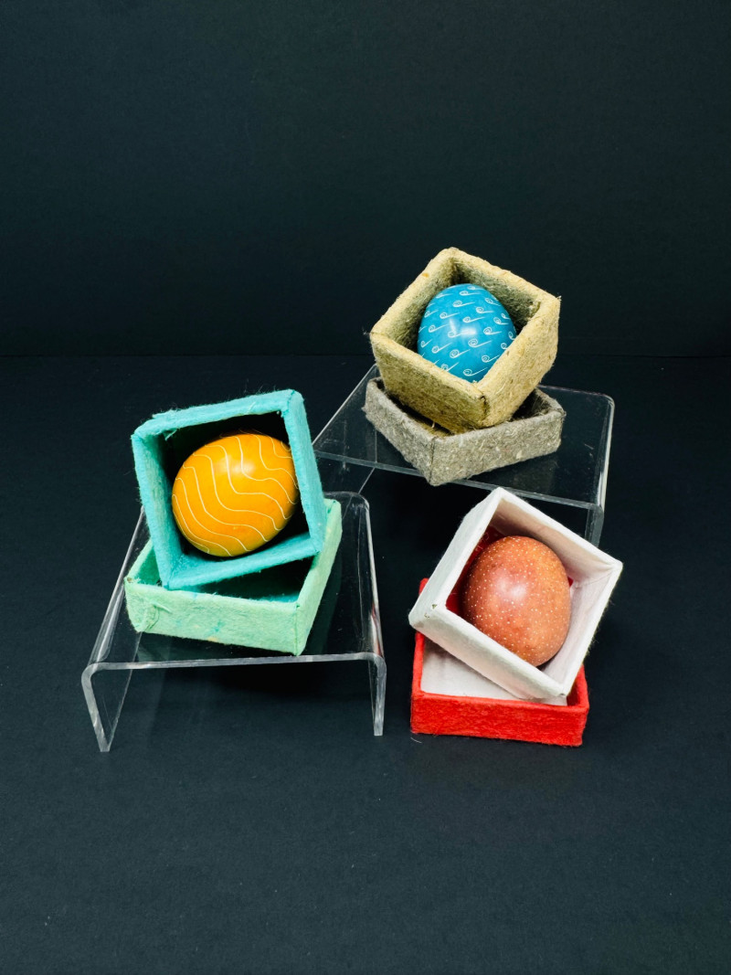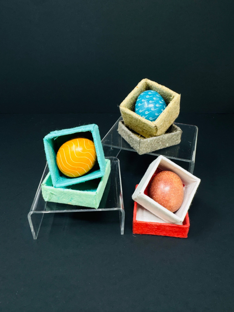 Carved Stone Eggs in Colorful Craft Paper Boxes – Set of 3. 1.5”