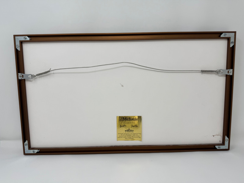 Framed "Southwest Ceramics" Counted Cross-Stitch (2004). 20.5” Wide x 11.5” Tall