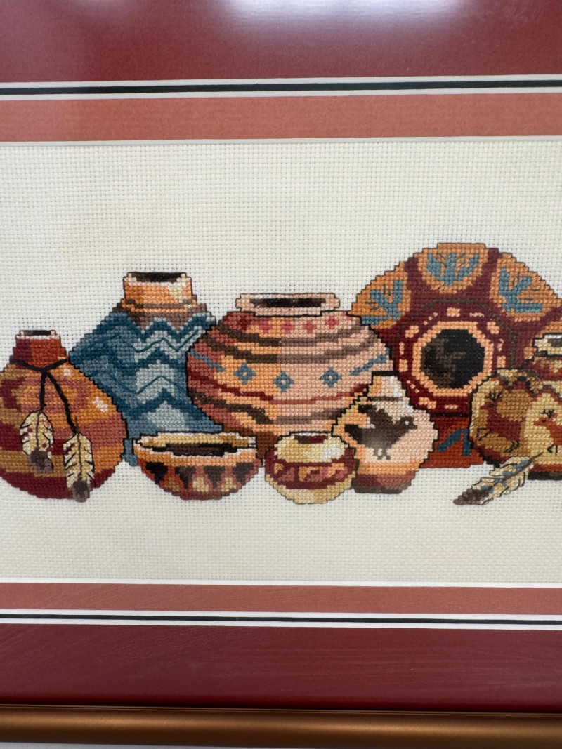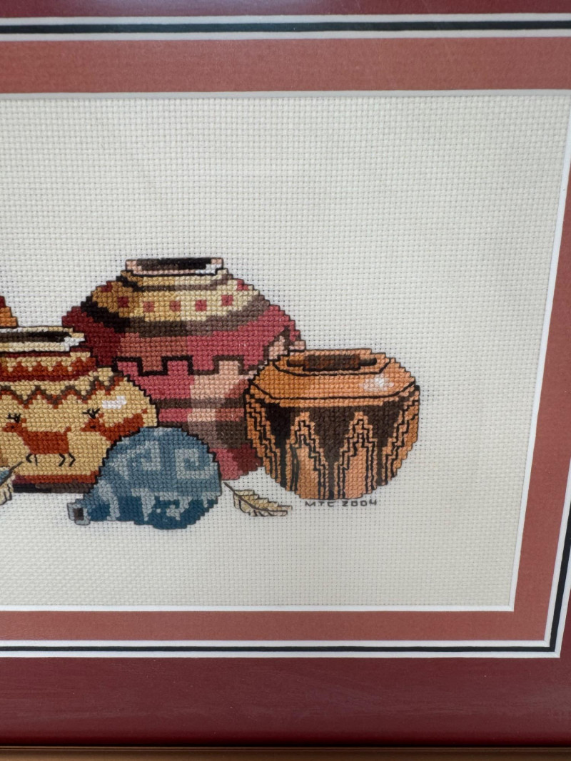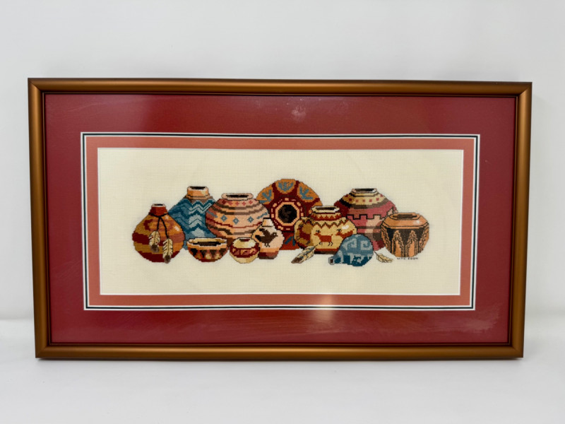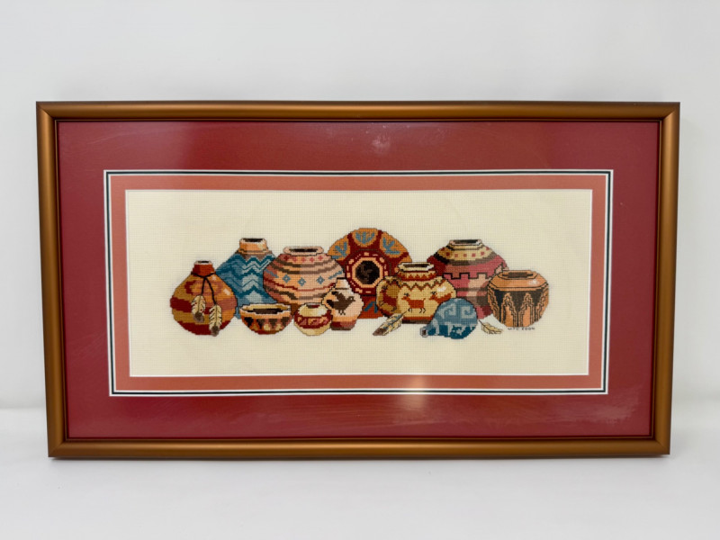 Lot # 40 - Framed "Southwest Ceramics" Counted Cross-Stitch (2004)