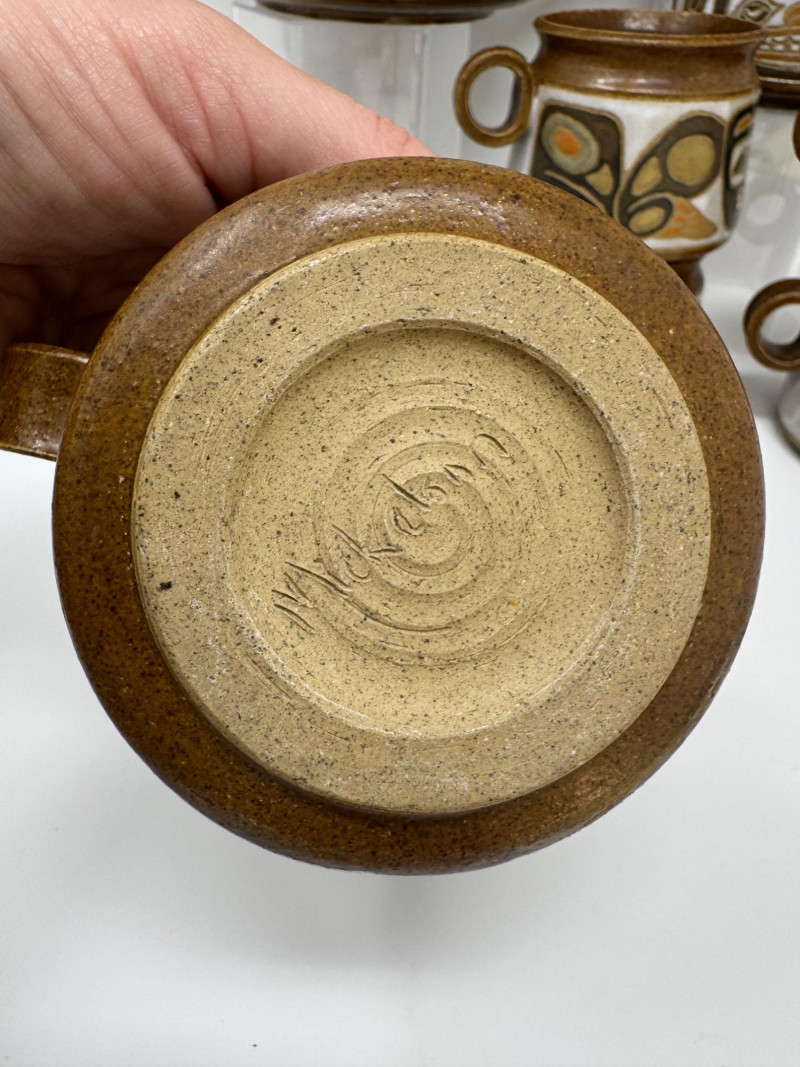 Lot # 41 - Arlene Mickelson Studio Pottery Teapot, Canister & 6 Mugs Set