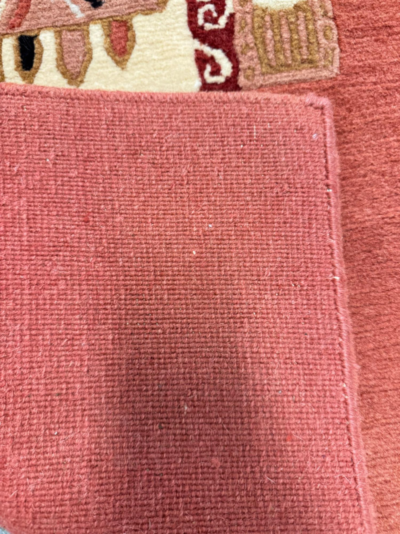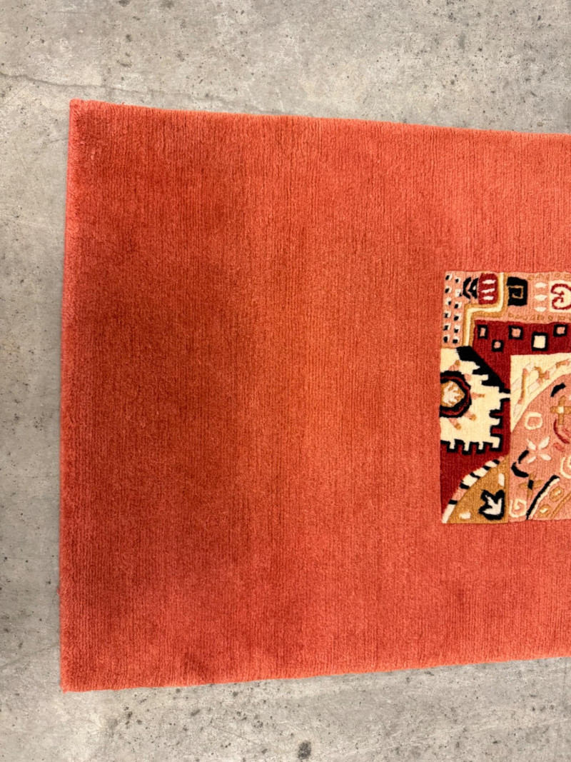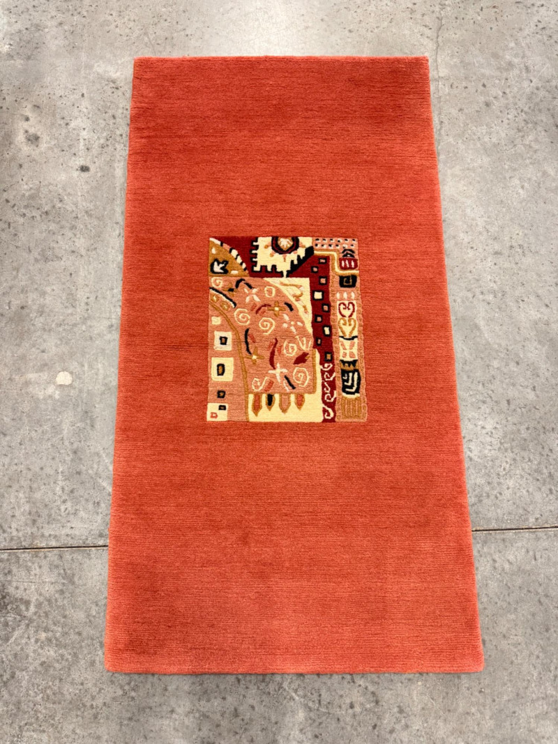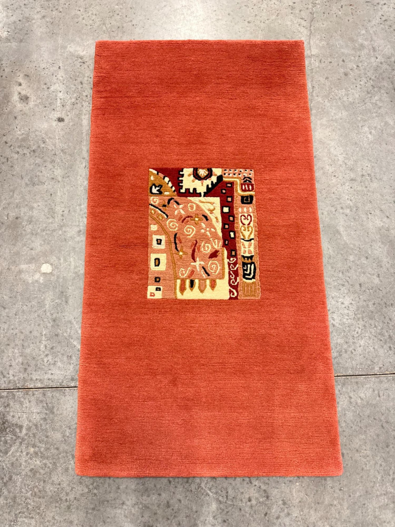 Tibetan Wool Rug w/ Bold Abstract Motif Center Panel. 28 x 54”