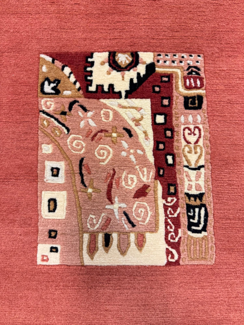 Lot # 47 - Tibetan Wool Rug w/ Bold Abstract Motif Center Panel