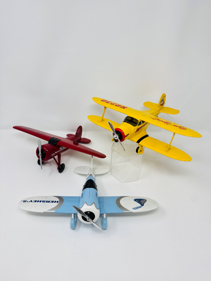 Set of 3 Vintage Diecast Plane Banks – Hershey, Earhart & Tiger Spirit.