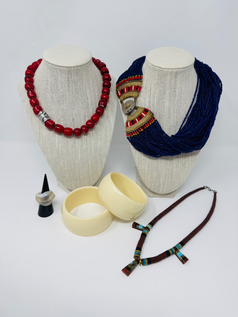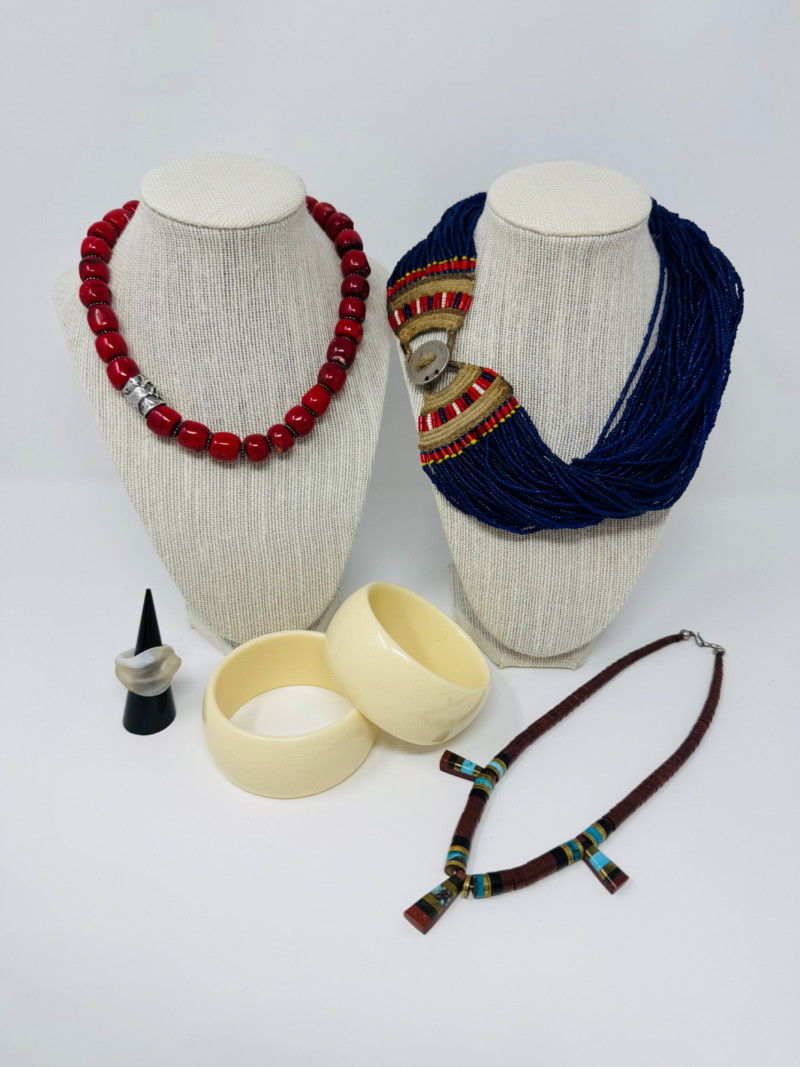 Lot # 59 - Mixed Jewelry Lot – Konyak Naga Style Beads, Inlay Pendant, Bangles +